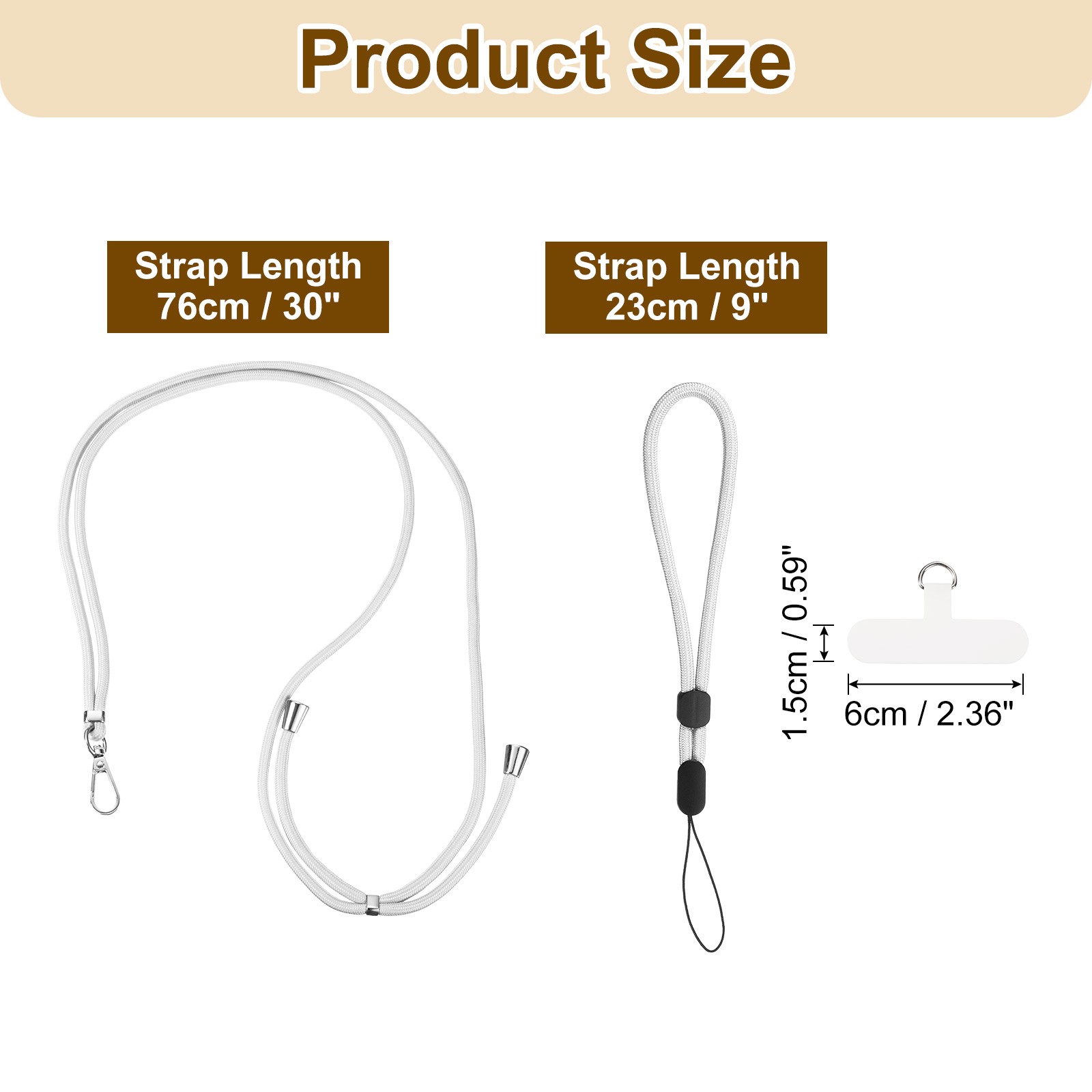 Phone Lanyards 2Pcs - 1Pcs 30 Neck Strap, 1Pcs Wrist Strap with Pad, White