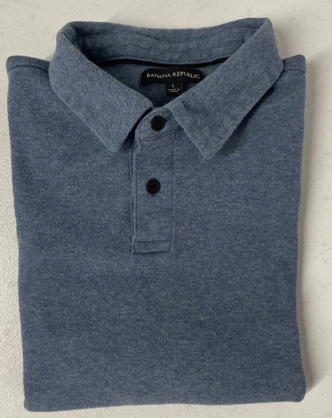 Banana Republic Men's Luxe Touch Performance Polo Shirt BLUE Cotton LARGE Short