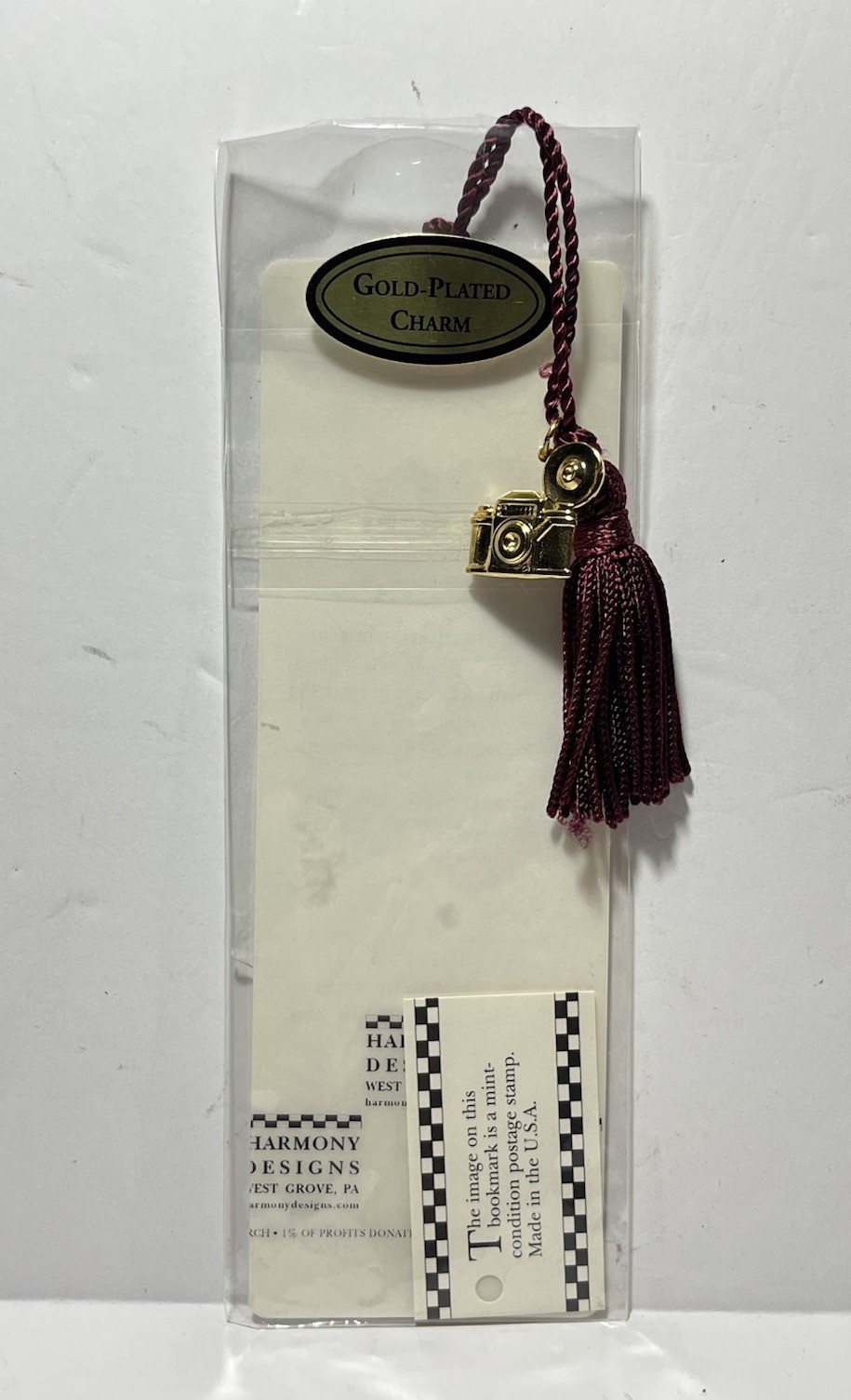 Vintage George Eastman Stamp Bookmark w/ Gold Plated Camera Charm, Facts - Kodak