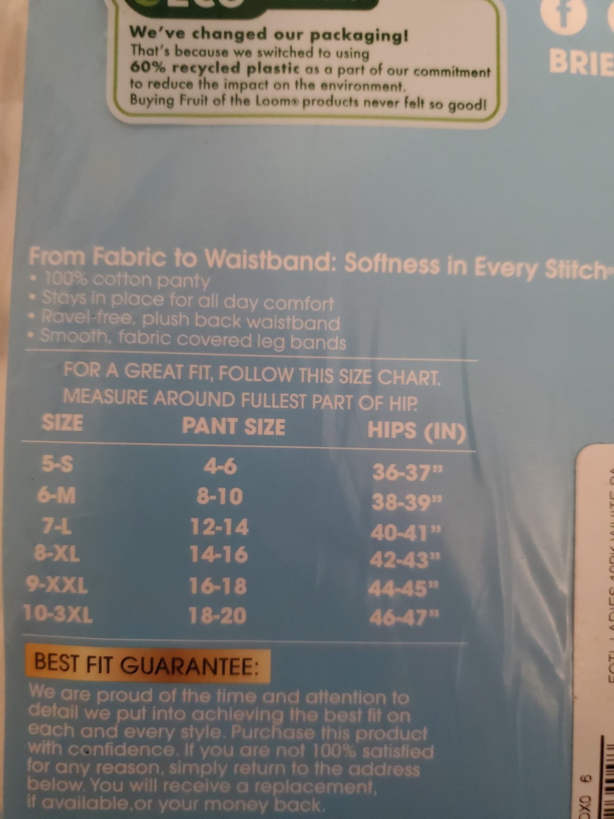 10 Pair Fruit of the Loom Cotton Briefs Size 6/M Breathable Eversoft WP156