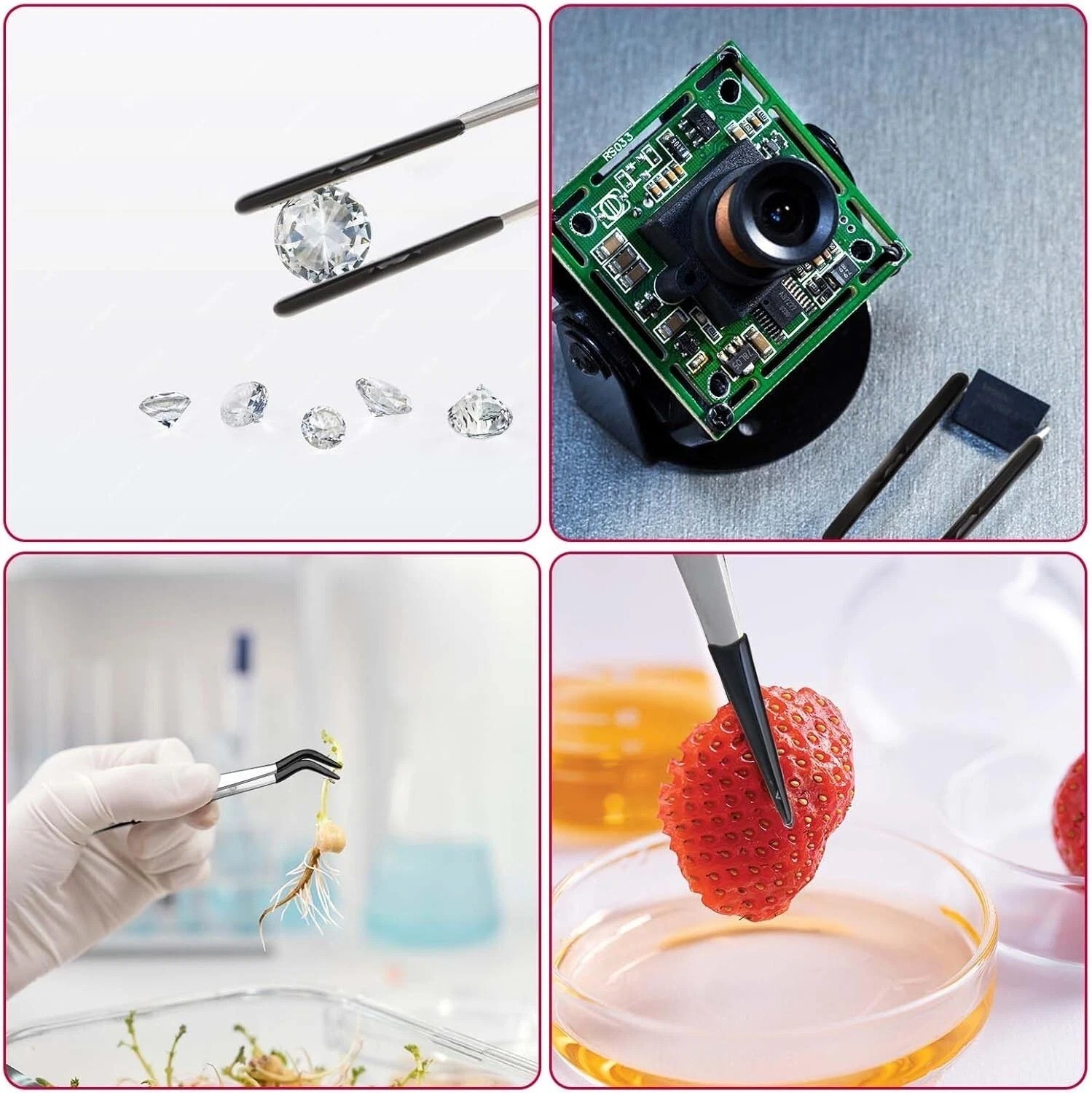 4 Pcs Rubber Tip Tweezers Stainless Steel Precision Tweezers for Crafts Jewelry