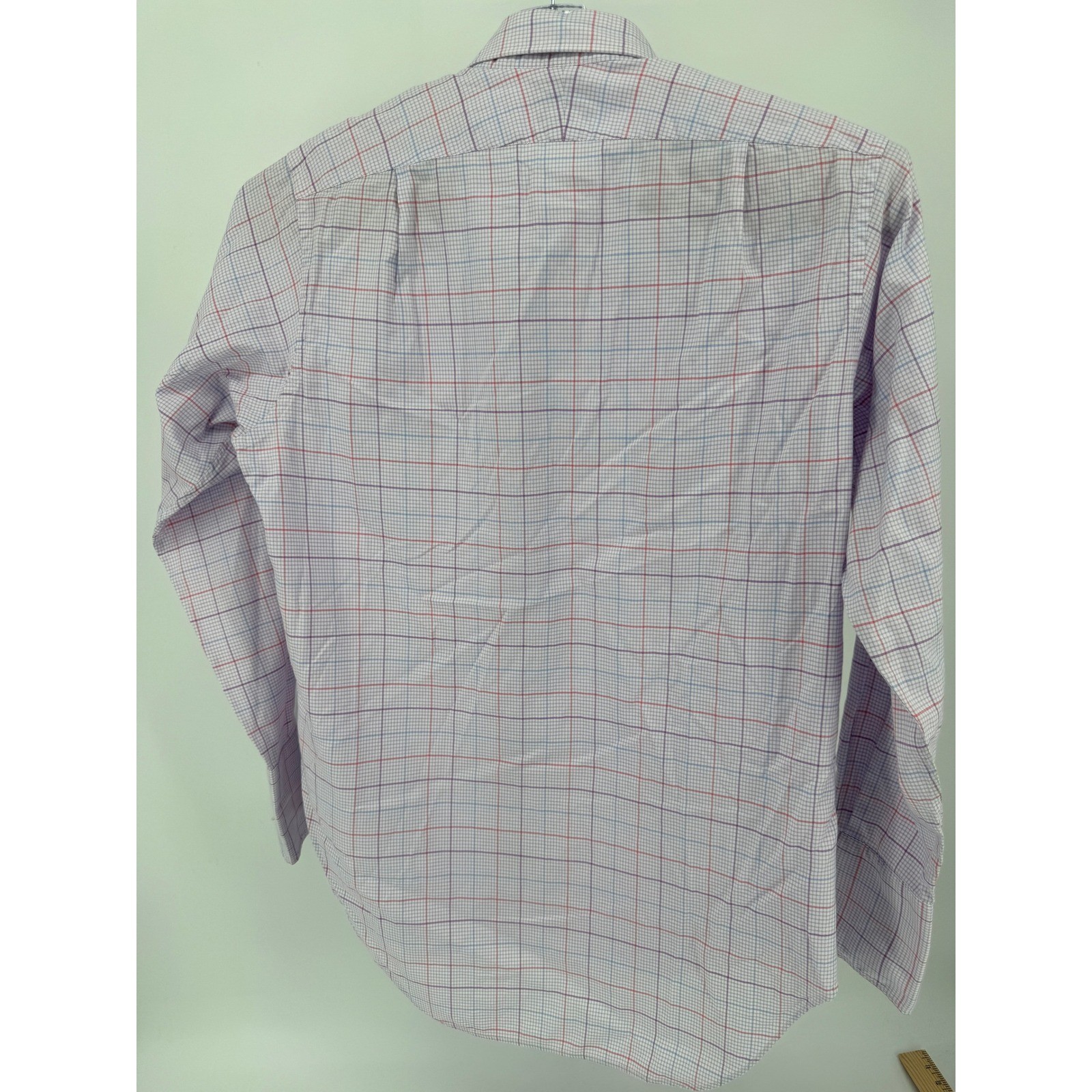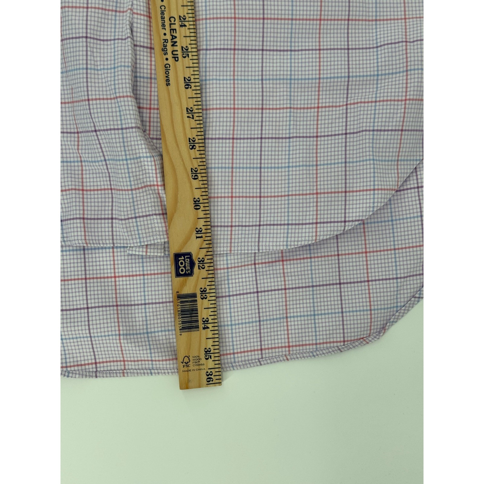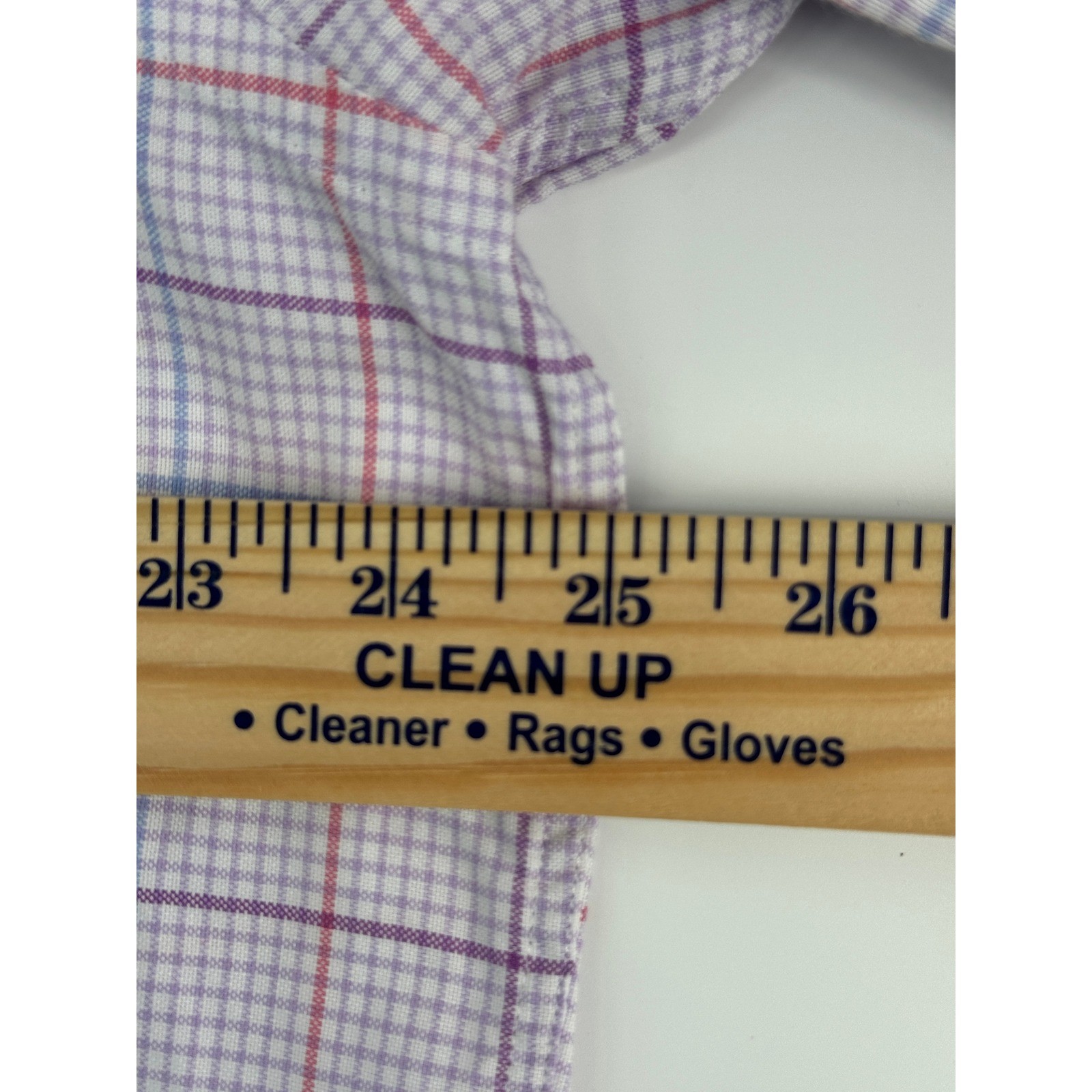 как выглядит TM Lewin Luxury Shirt 17 36 Mens French Cuff Purple Plaid Checkered Long Sleeve фото