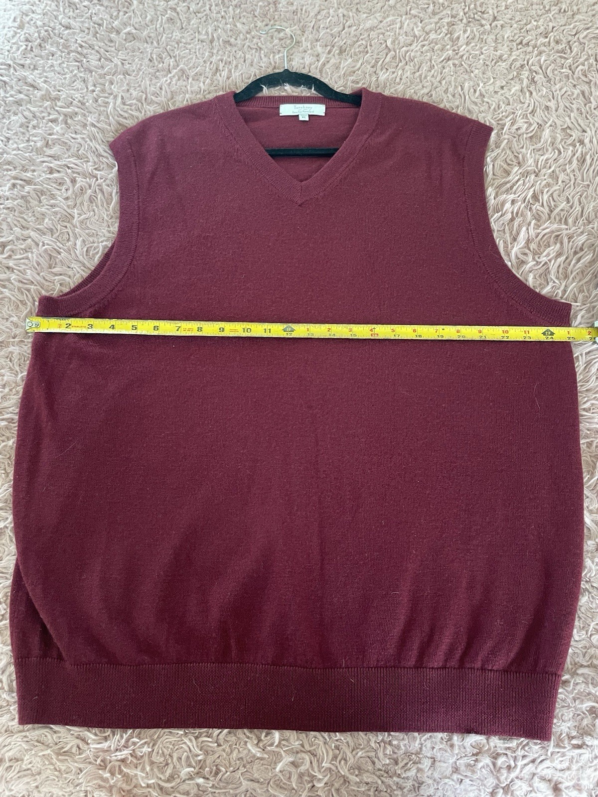 как выглядит Men s Turnbury Extra Fine Merino Wool Vest Burgundy Sweater V Neck Size XL фото