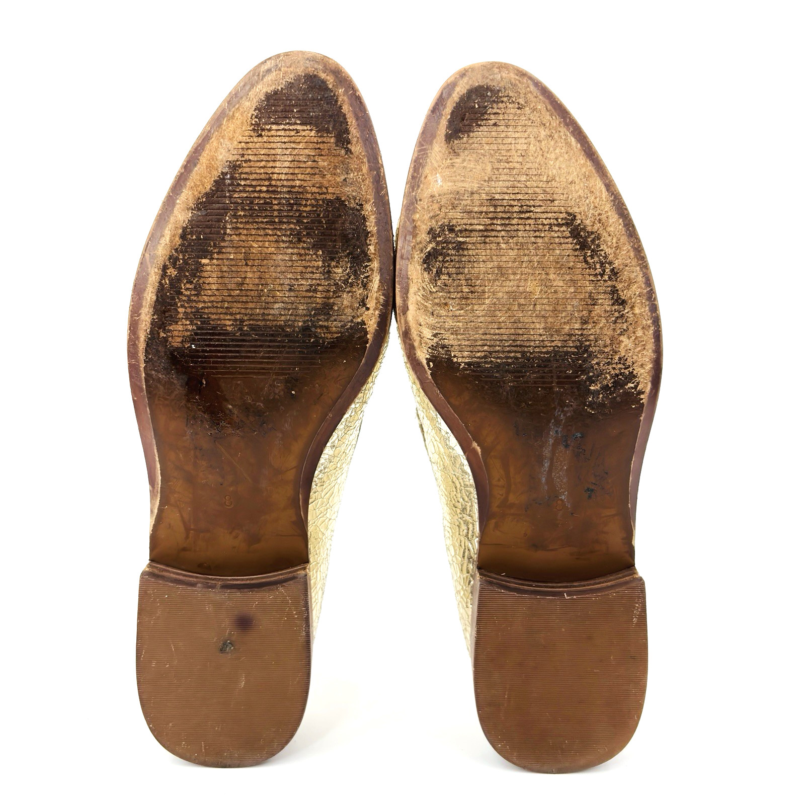 как выглядит Womens 8 Madewell Frances Loafer Flat Shoes K4433 Gold Crackle Finish Leather фото