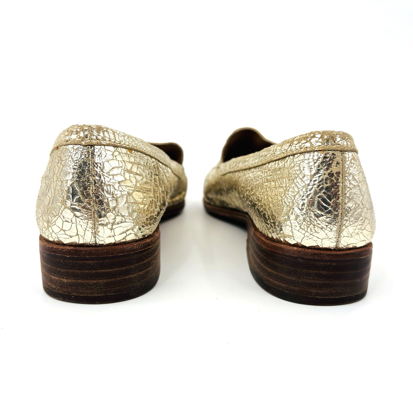 Womens 8 Madewell Frances Loafer Flat Shoes K4433 Gold Crackle Finish Leather