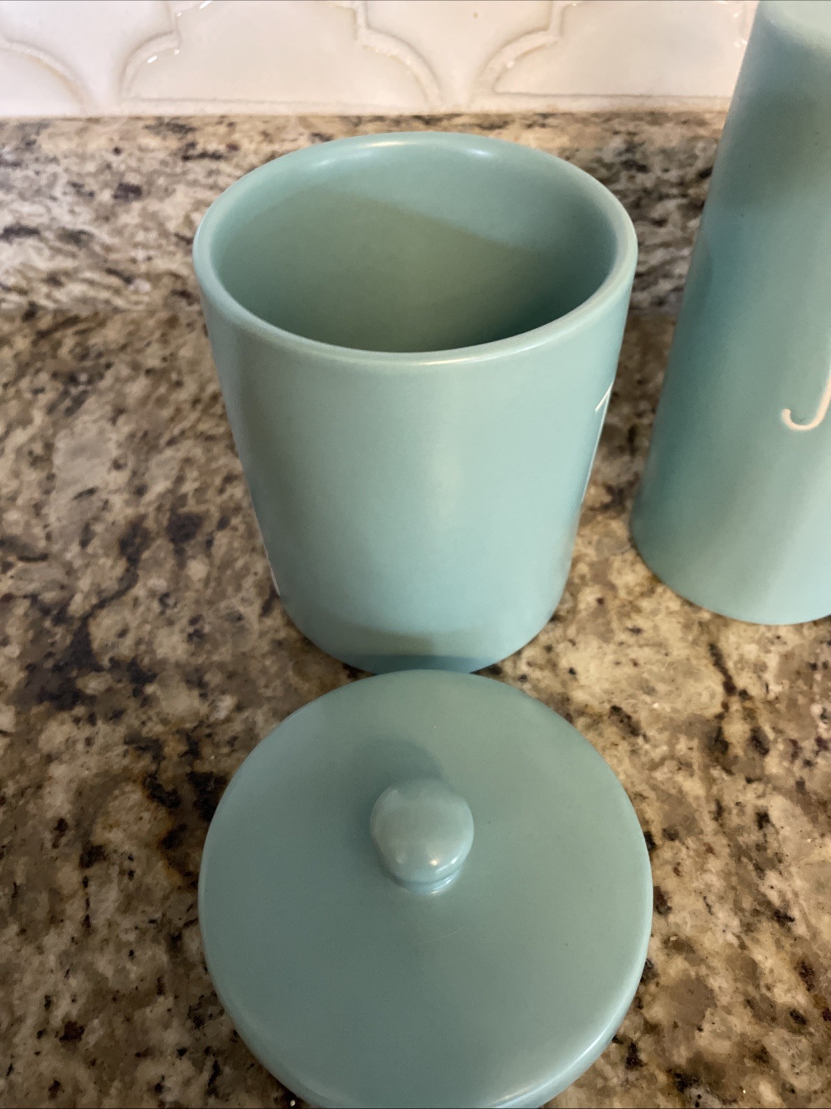 Rae Dunn Bathroom SOAP Dispenser THINGS canister Set In Teal NEW