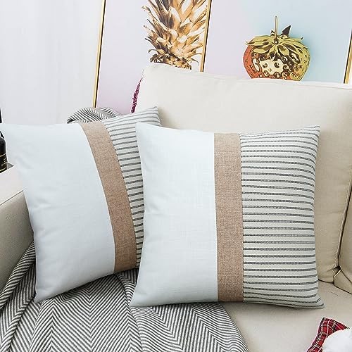 Farmhouse Pillow Covers 18x18, Modern Accent Square 18 x 18 Pack of 2 Grey