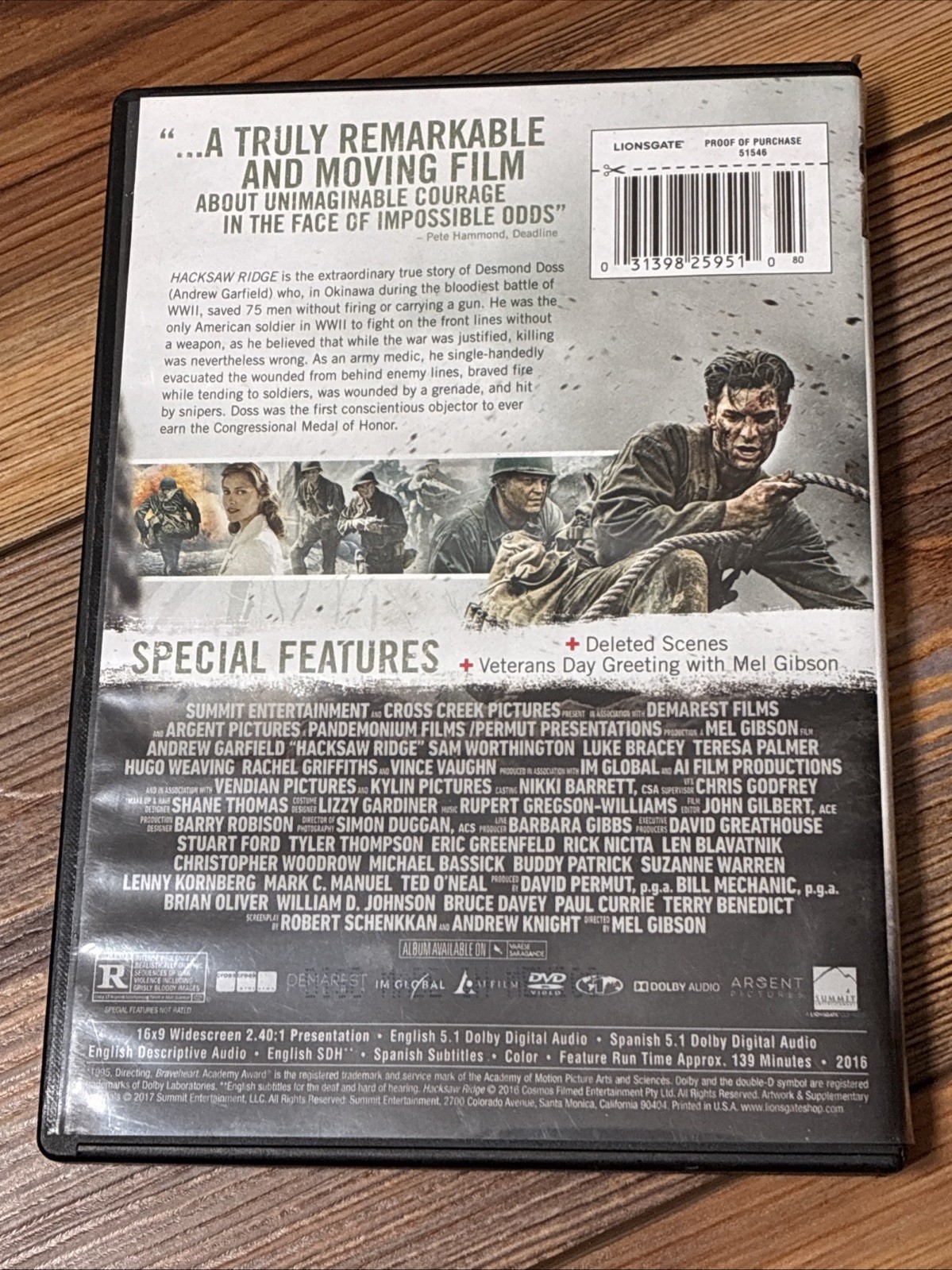 как выглядит Hacksaw Ridge DVD Tested Working фото