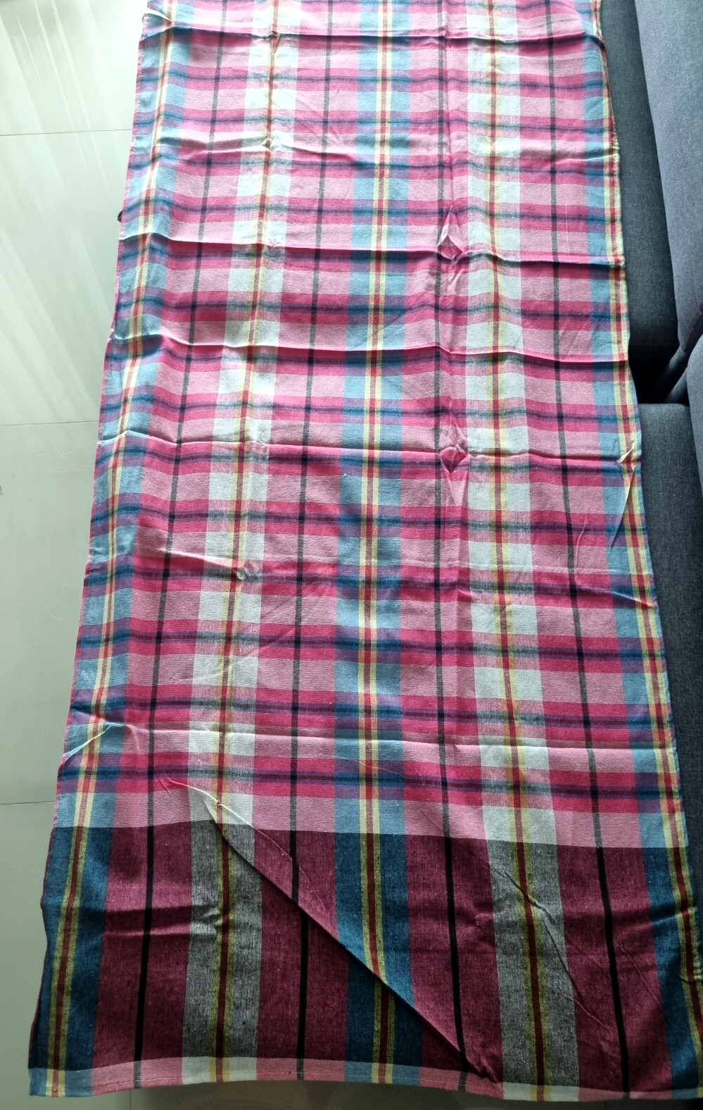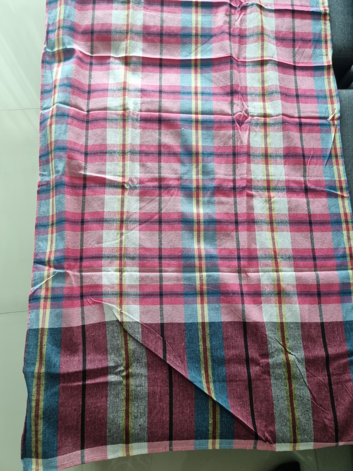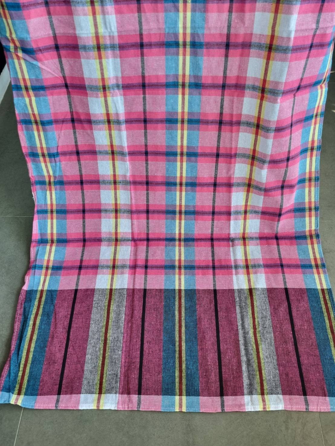 как выглядит Thai Loincloth Pha Kao Ma Cloth Fabric Kaoma Plaid Vintage Pastel Pink Unisex L фото