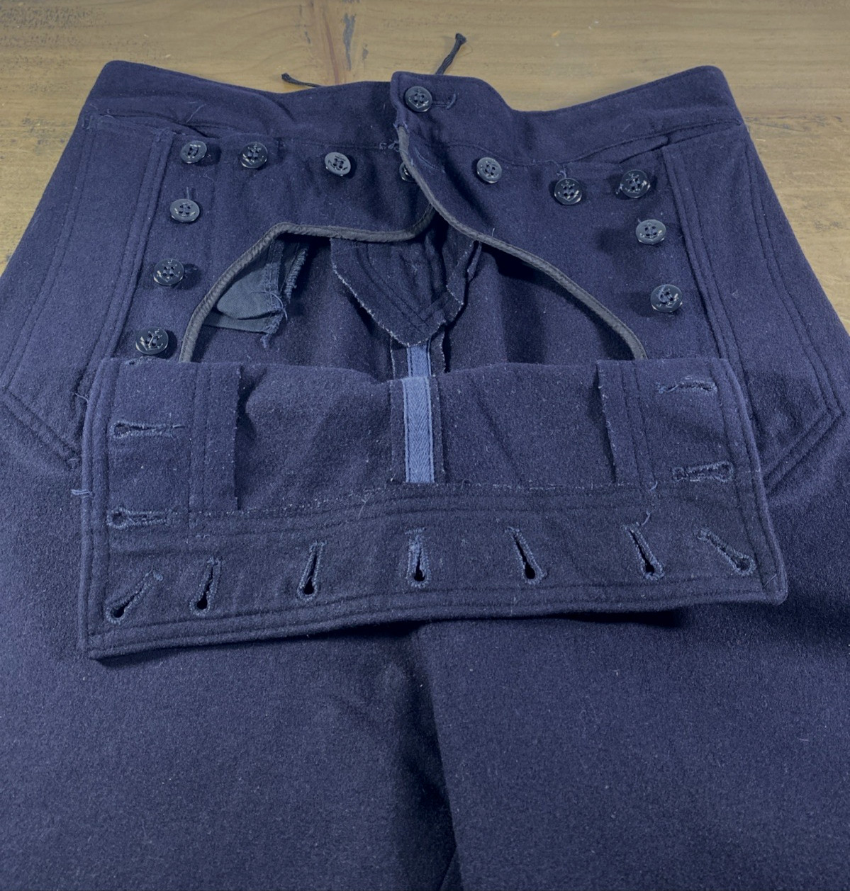 как выглядит Vintage USN Uniform Pants Sailor Wool BELL BOTTOM Military Tag 32L Fit 30x32 фото