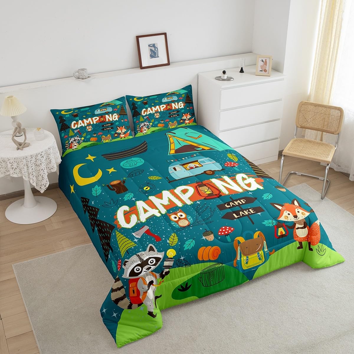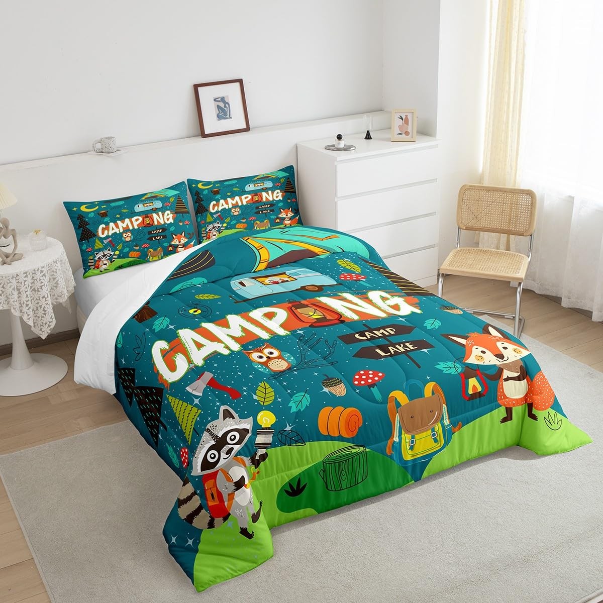Happy Camping Comforter Set Camper Kids Bedding Comforter Sets for Boys Teens...