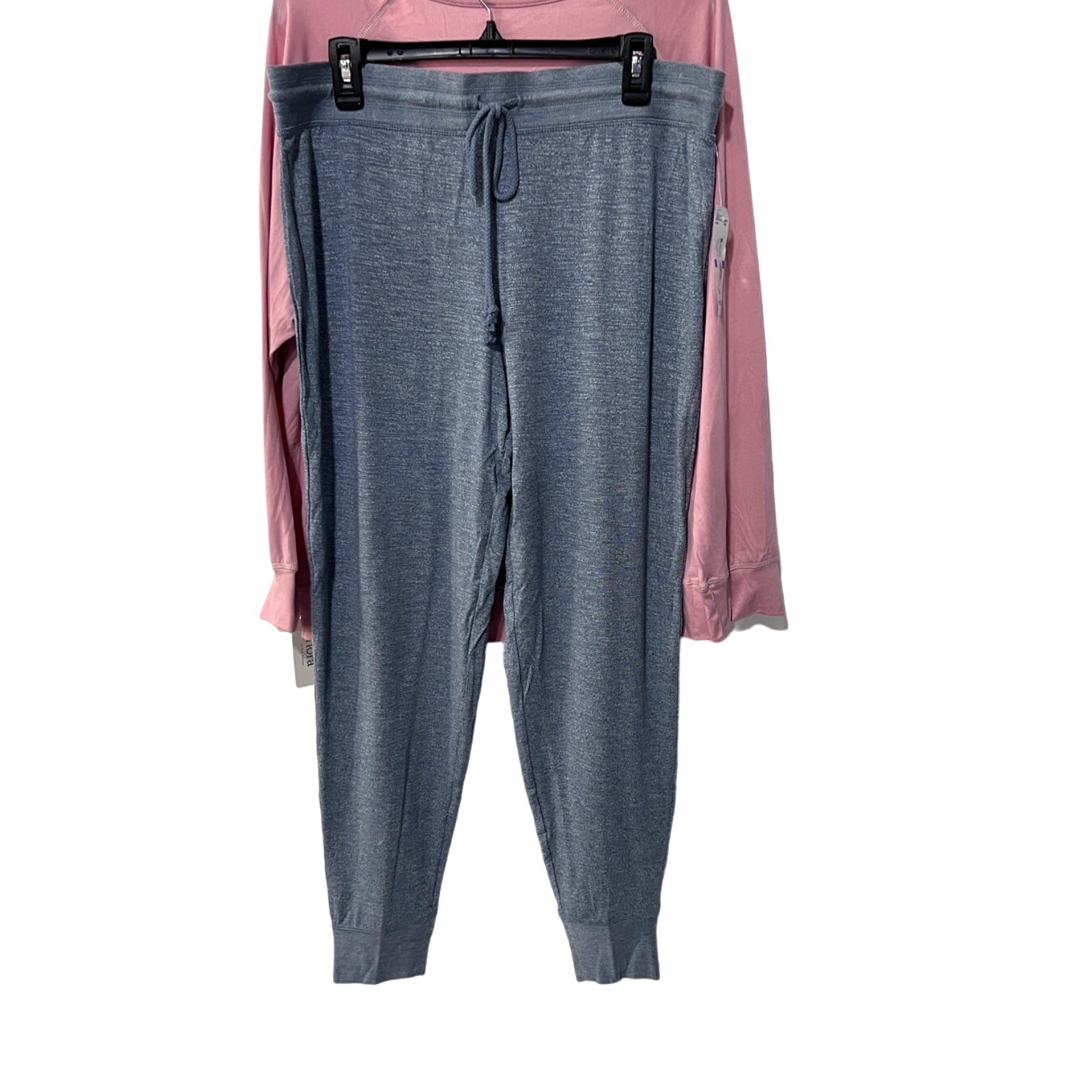 FELINA FLORA PJ'S MIXED LOUNGE SET PINK SOLID T-SHIRT BLUE JOGGERS SIZE XL