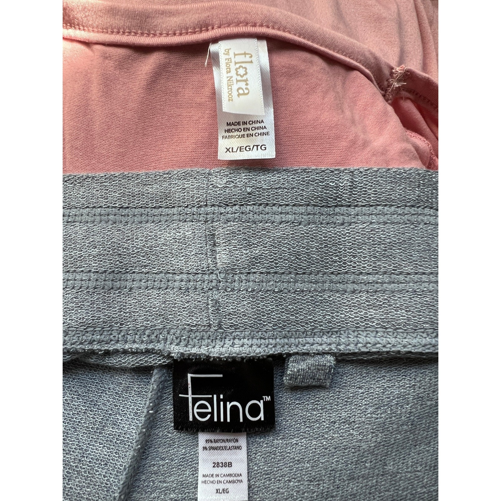 как выглядит FELINA FLORA PJS MIXED LOUNGE SET PINK SOLID T-SHIRT BLUE JOGGERS SIZE XL фото