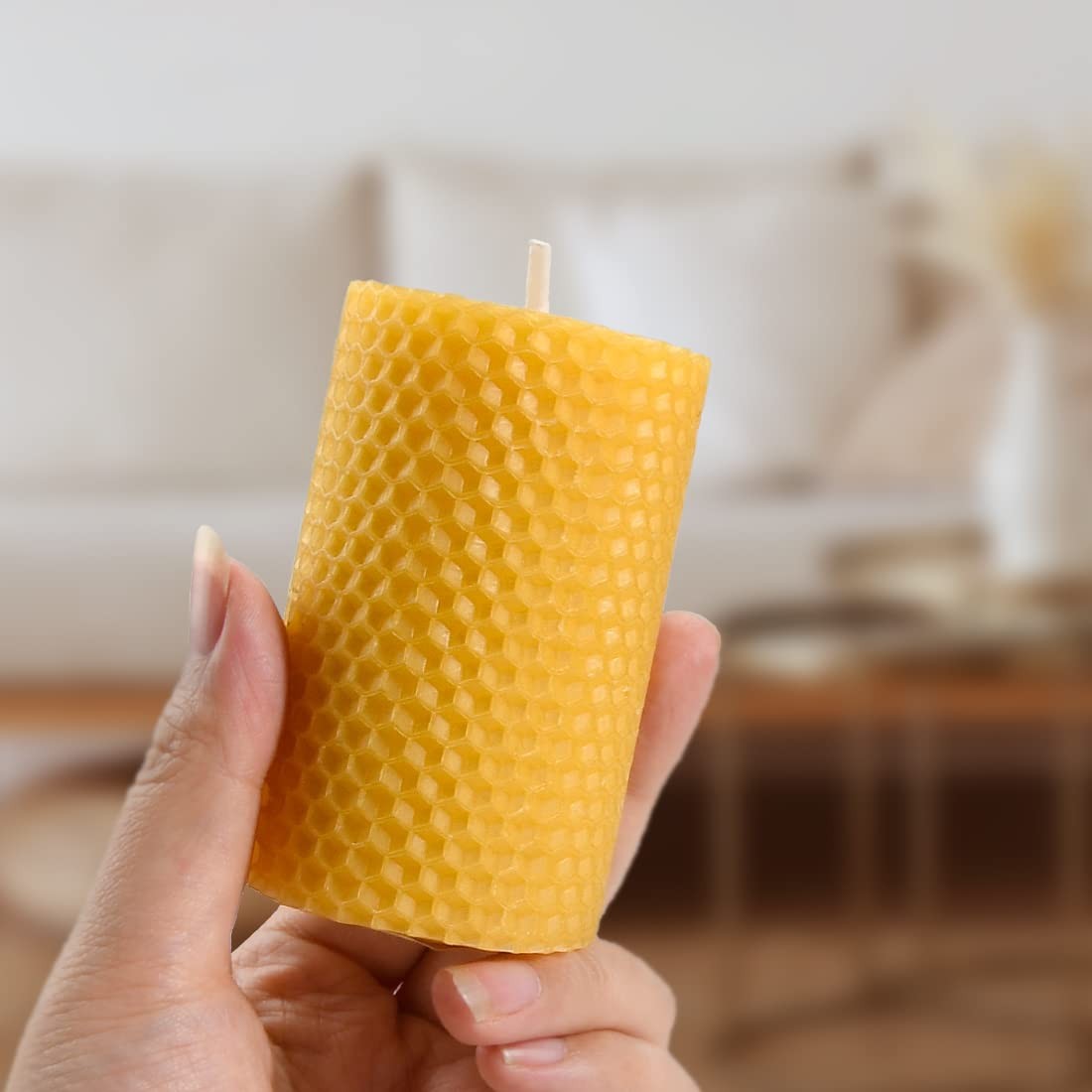 как выглядит Beeswax Pillar Candles Set of 3 - Handmade Pure Beeswax Rolled Candles for Gi... фото