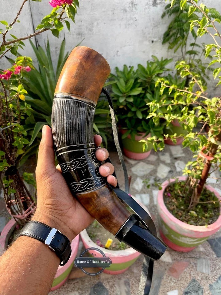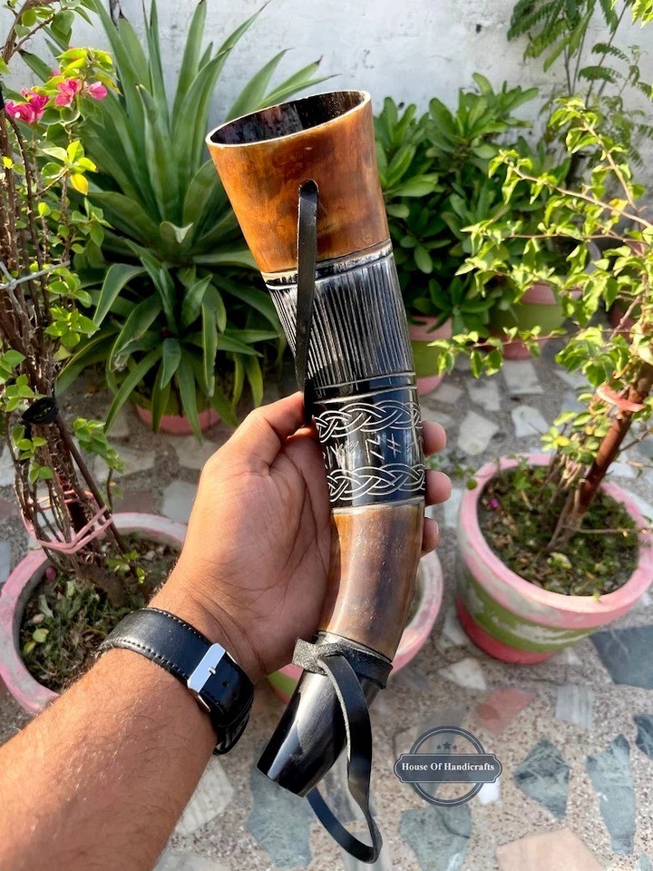 Viking War Horn - 16 Genuine Ox-Horn Battle Trumpet - Hand Engraved