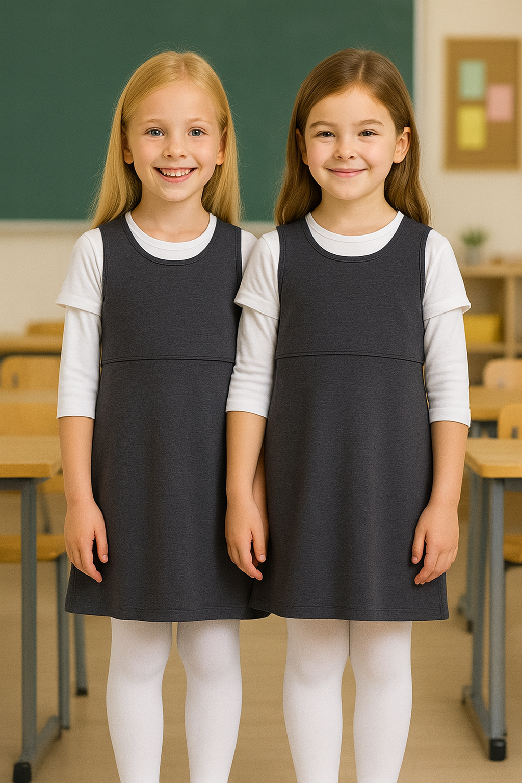 как выглядит Kids Girls 2 Pack Plain School Uniform Pinafore Dress Comfortable School Dress фото