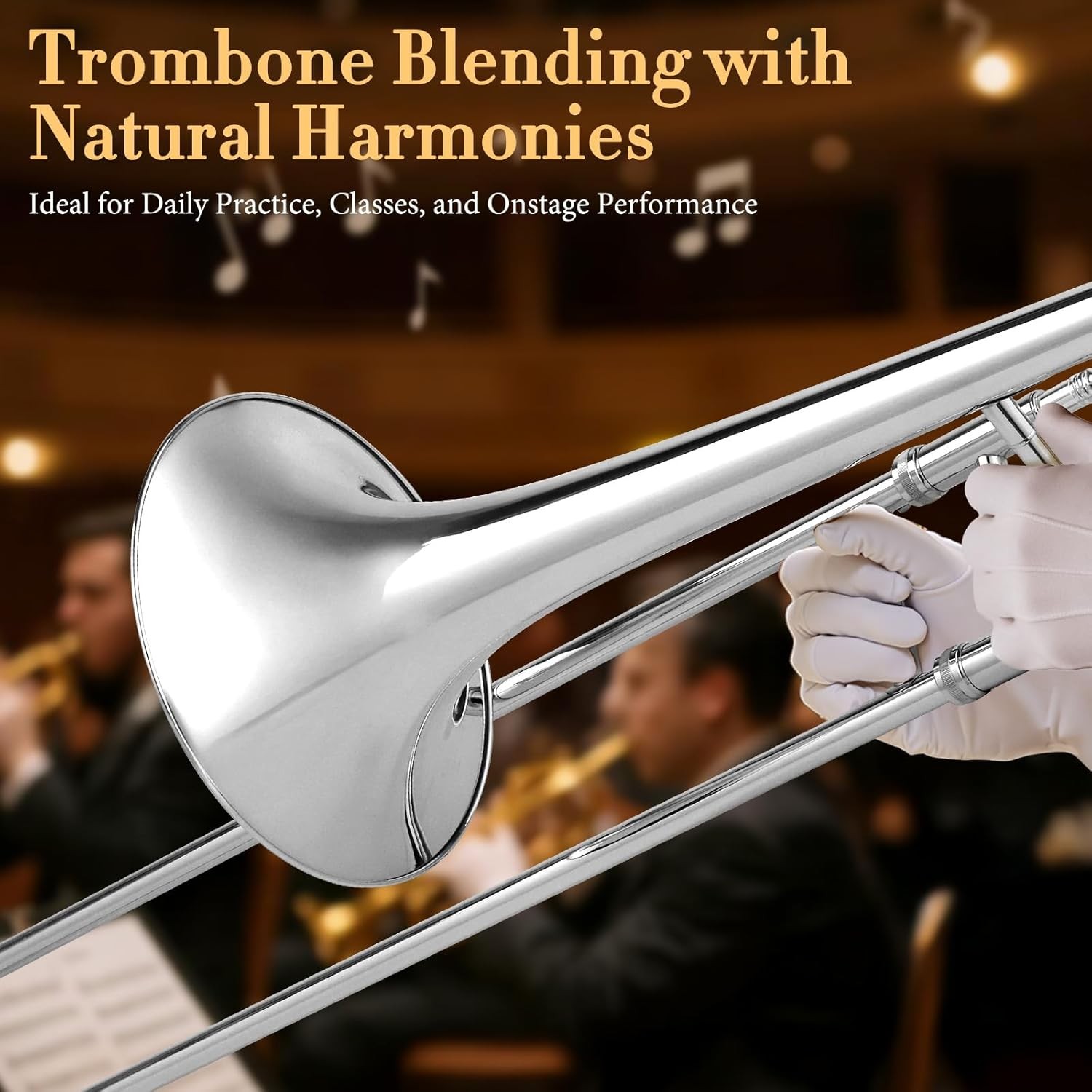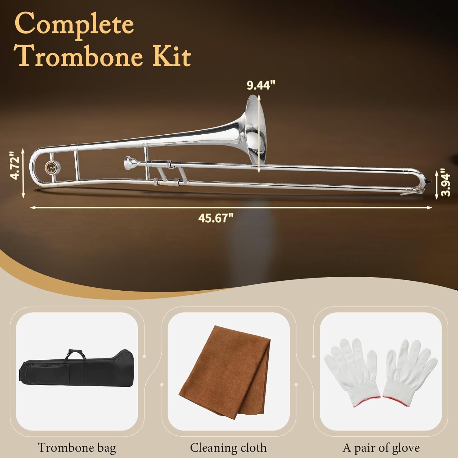 Bb Tenor Slide Trombone B Flat Brass Trumpet Set For School Band Student Silver
