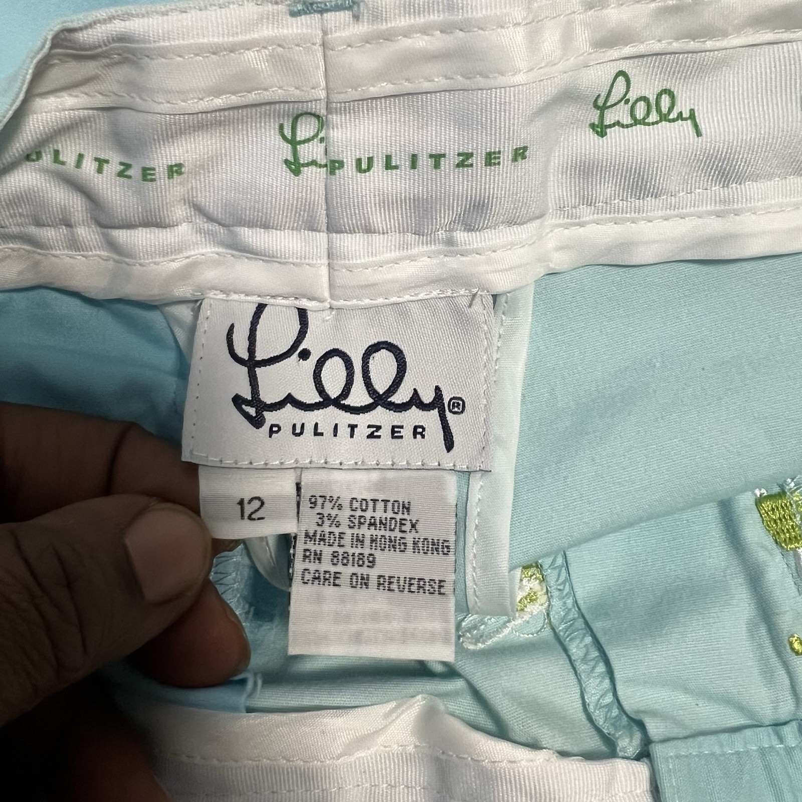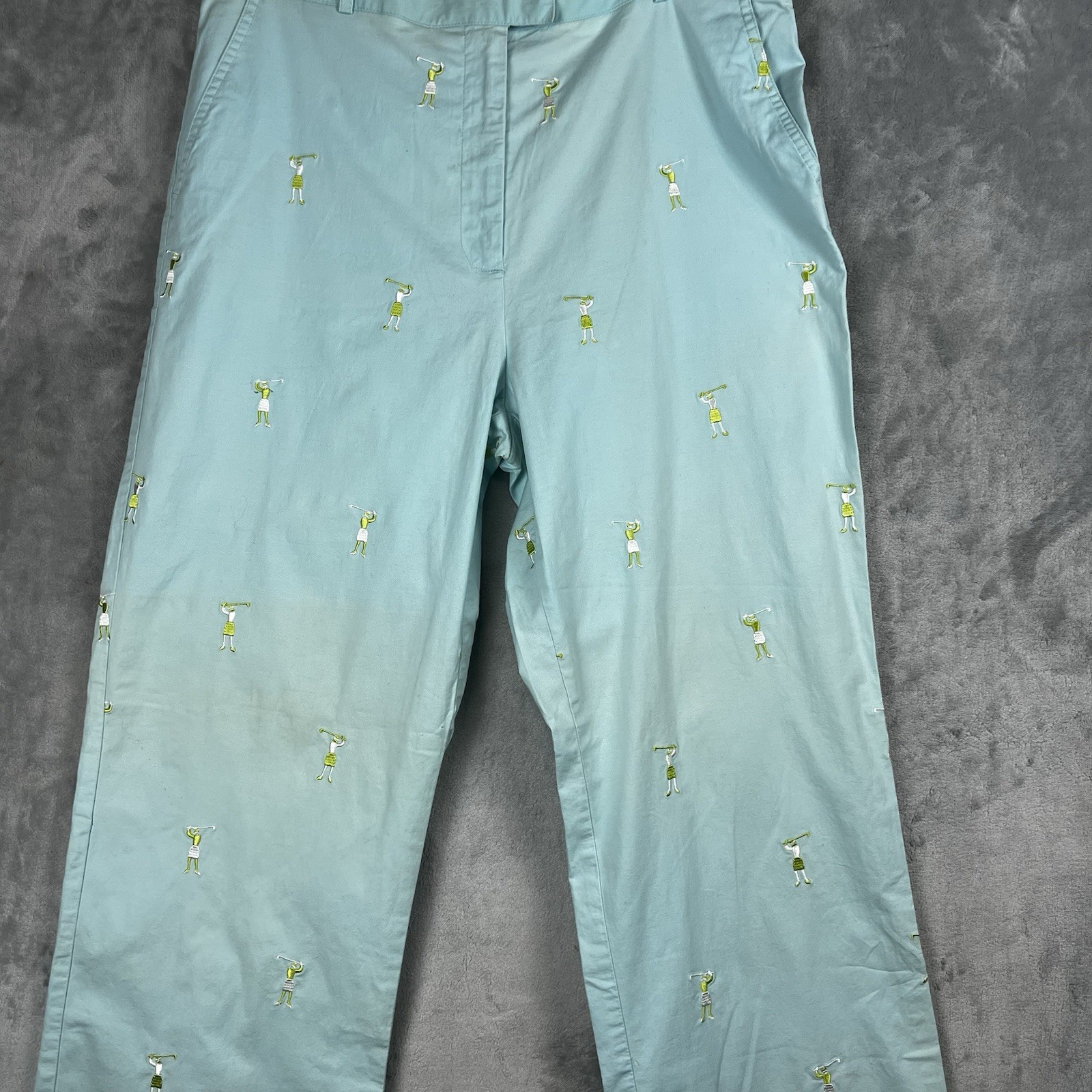 Vintage Lilly Pulitzer Golf Pants Womens 12 Blue Embroidered Golfer