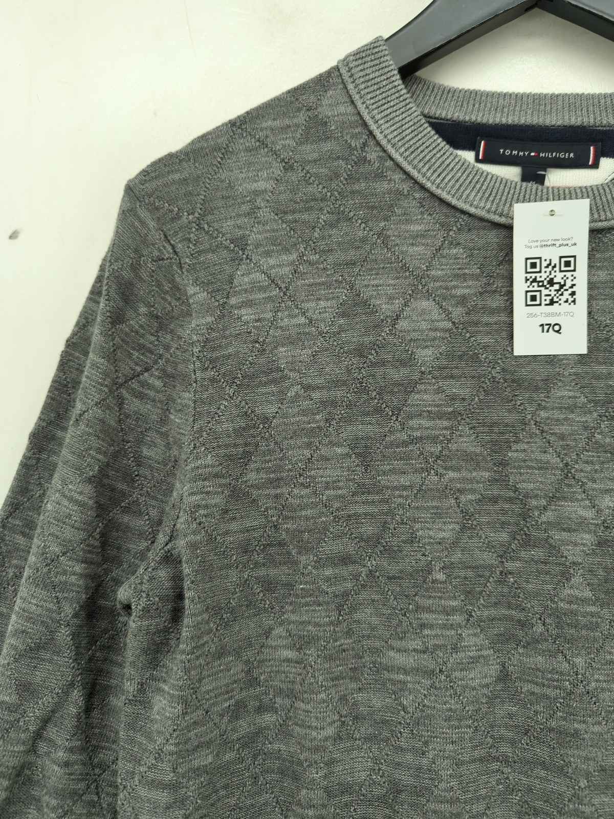 Tommy Hilfiger Men's Jumper M Grey Cotton with Silk Pullover