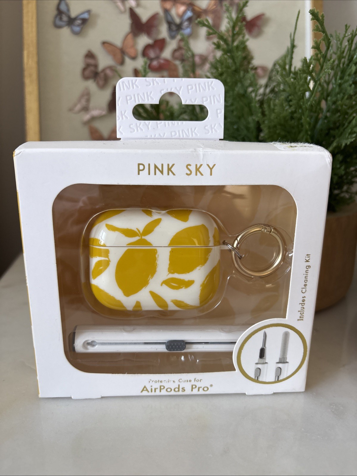 Pink Sky Airpods Case Airpods Pro White Yellow Lemons Key Ring Cleaning Kit