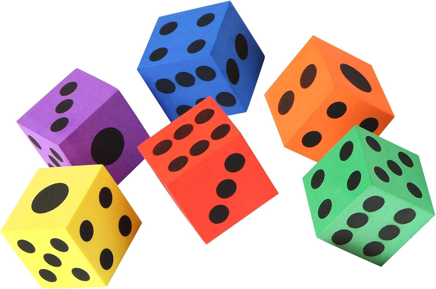 как выглядит Foam Dice Set, 1.5 Inch Large Assorted Colorful Foam Dice Cubes with Number Dots фото