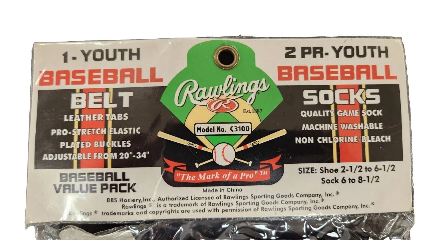 Rawlings Youth Blue Baseball Belt 2 Pair Sock Combo Pack Sock Size 6 - 8 1/2