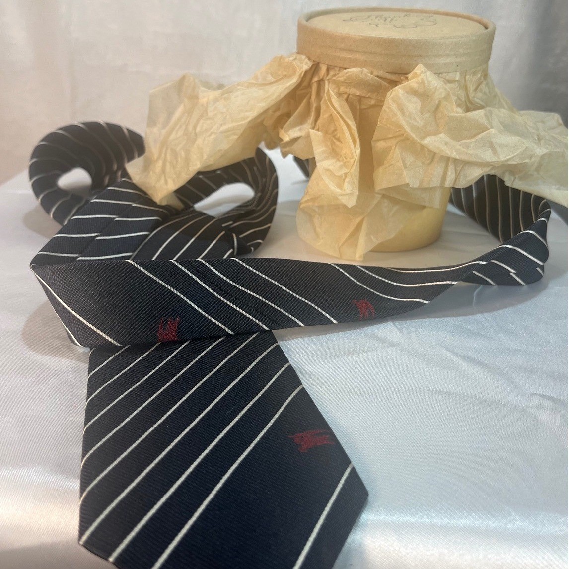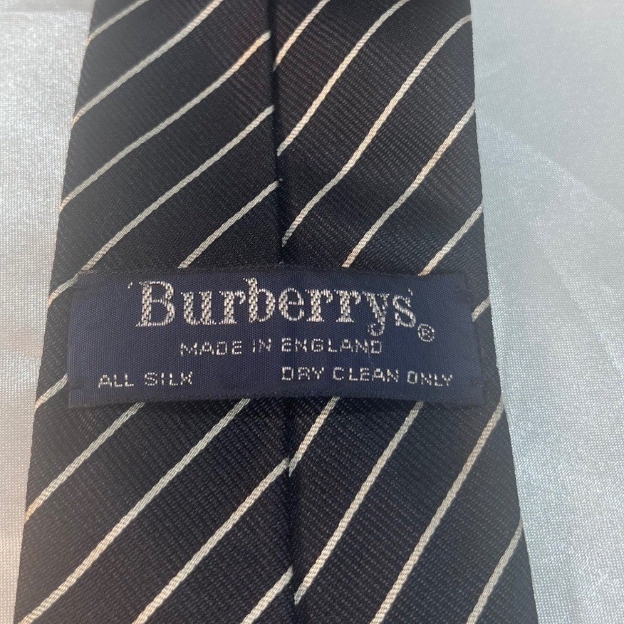 Burberrys England Silk Striped Tie Classic Navy Gentleman Heritage Lux