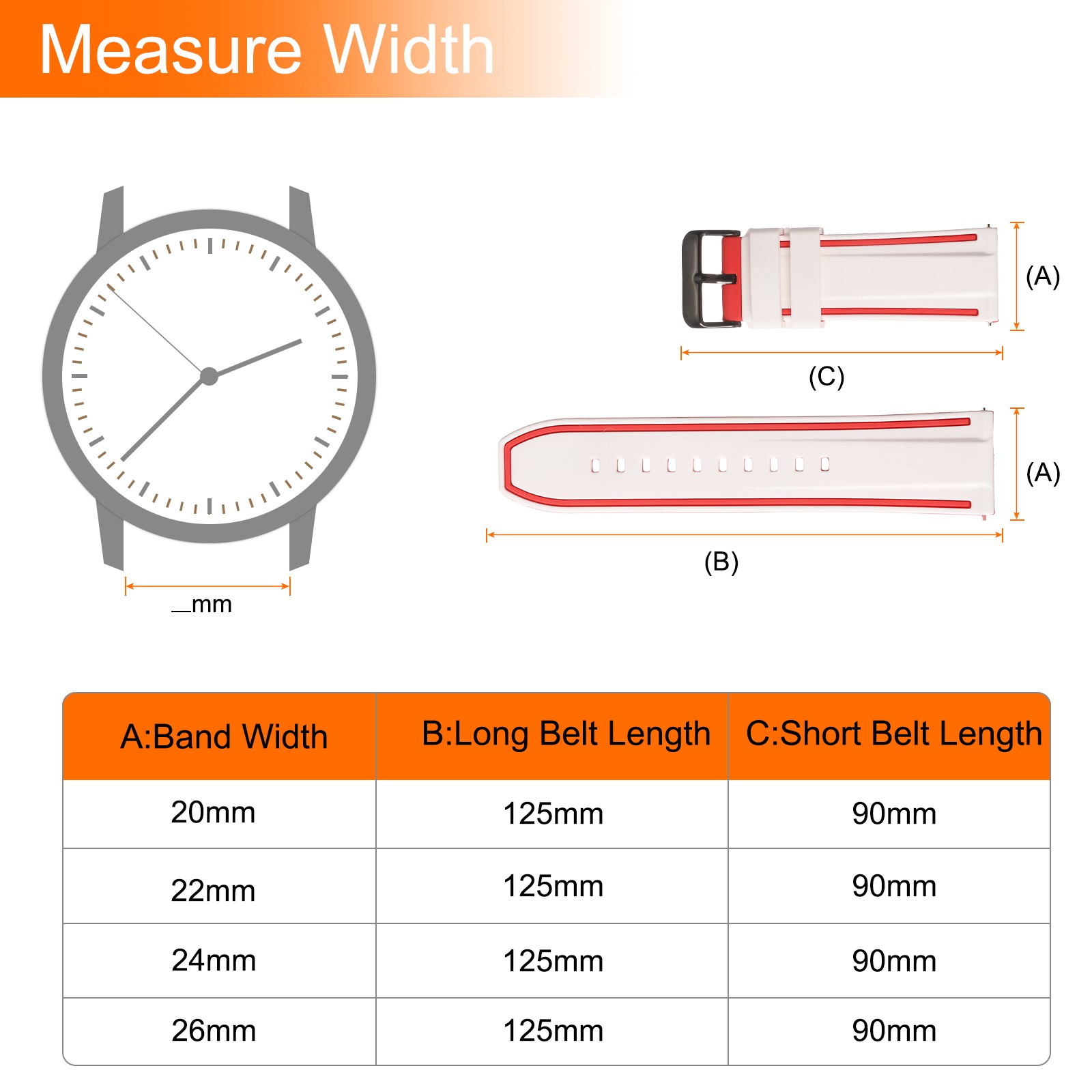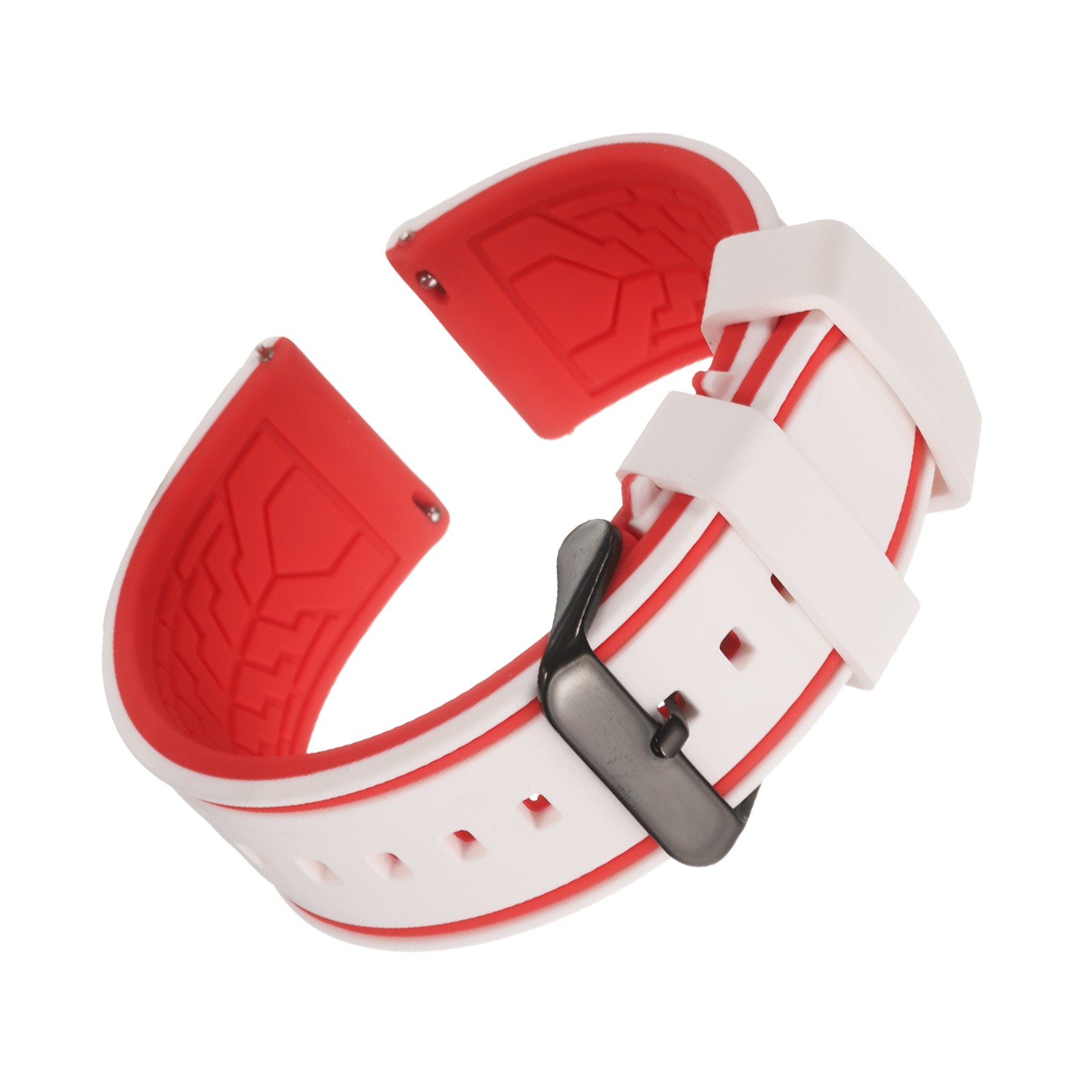 Silicone Watch Bands 26mm Soft Watch Bands with Black Buckle, White Red