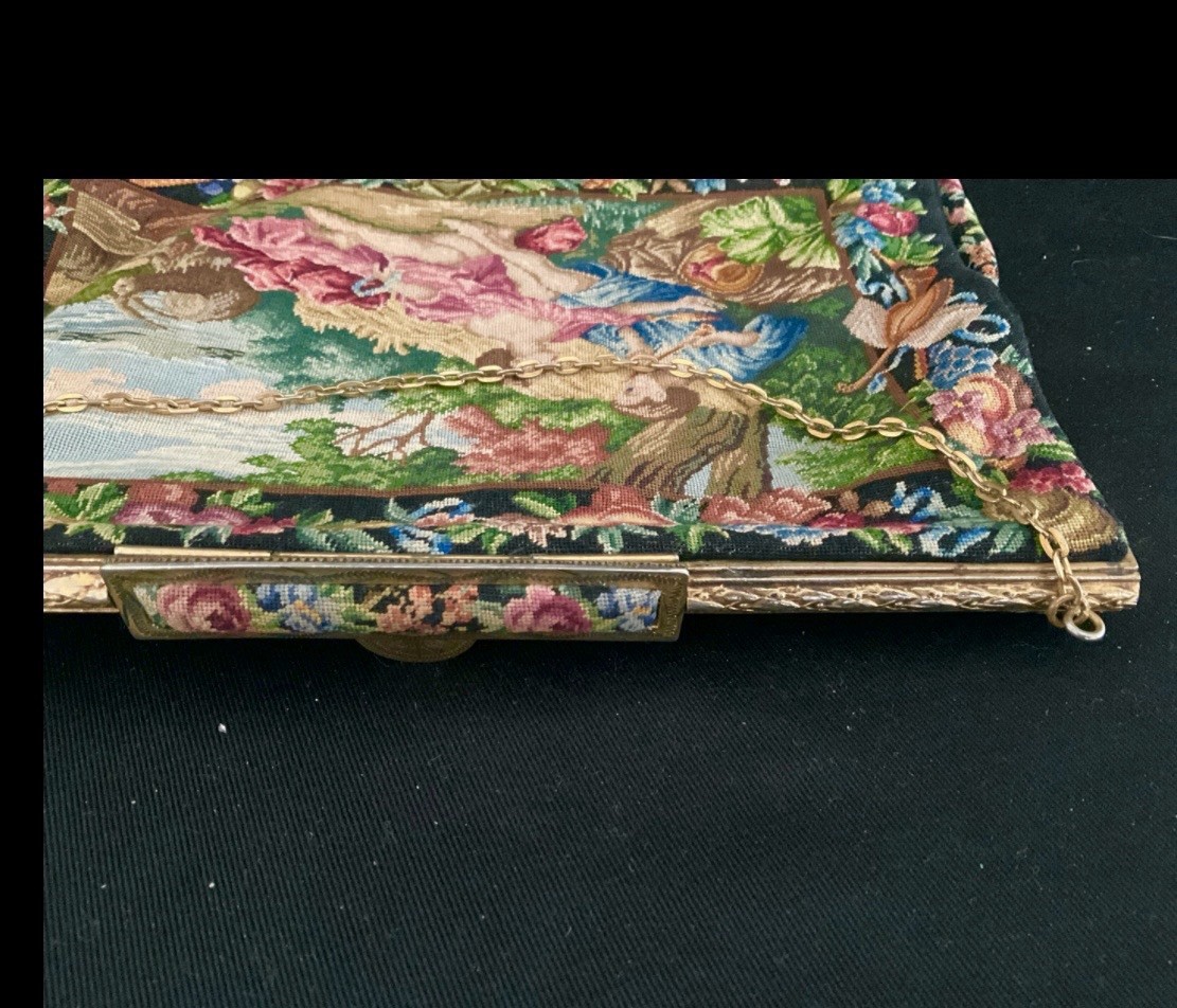 Vintage 1930's Art Deco Fine Needlepoint Tapestry Evening Bag w/Carved Frame.