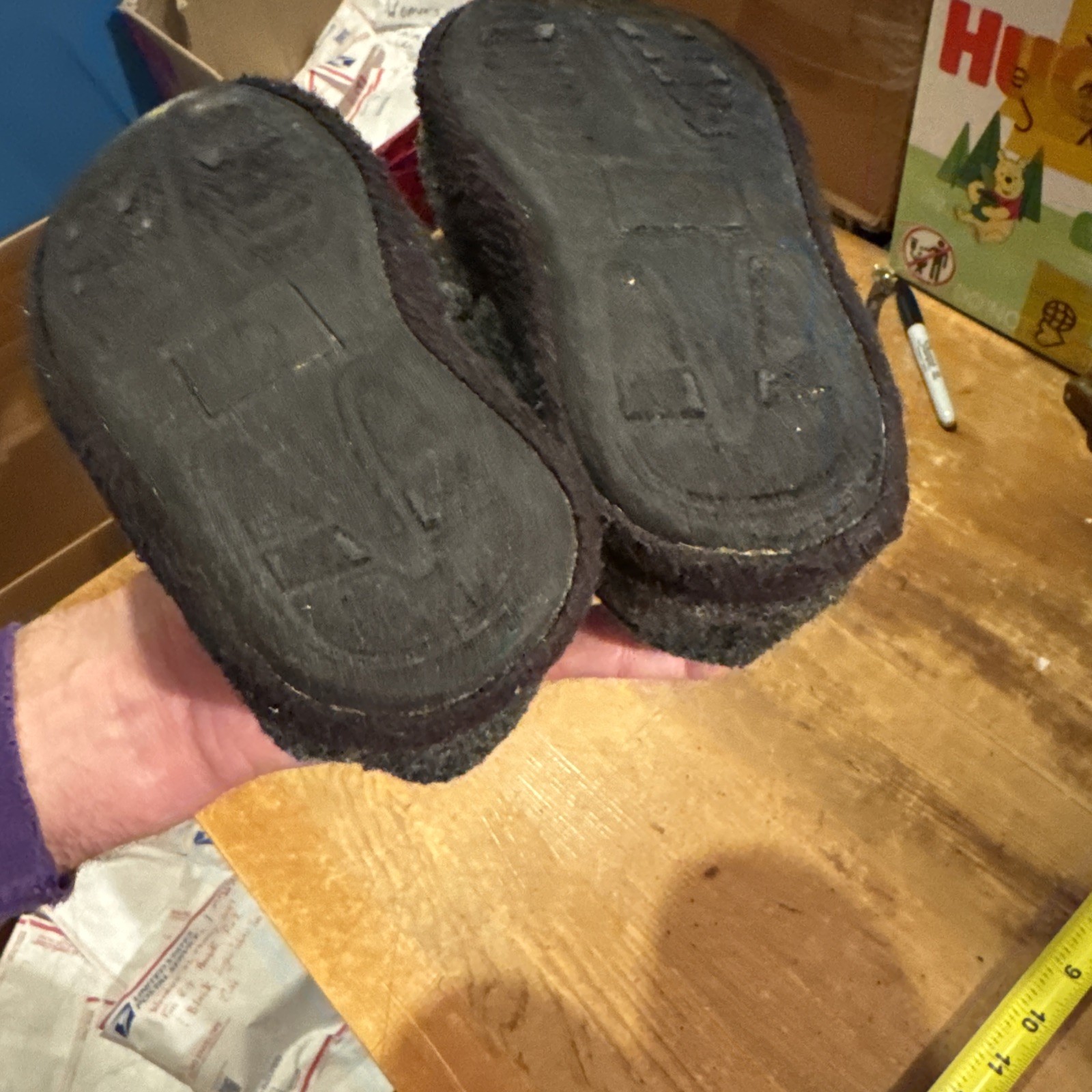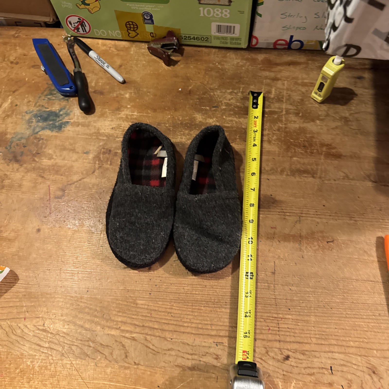 Boys Size Small Gray Rubber Sole Wool Style House Slippers Light Use Cute