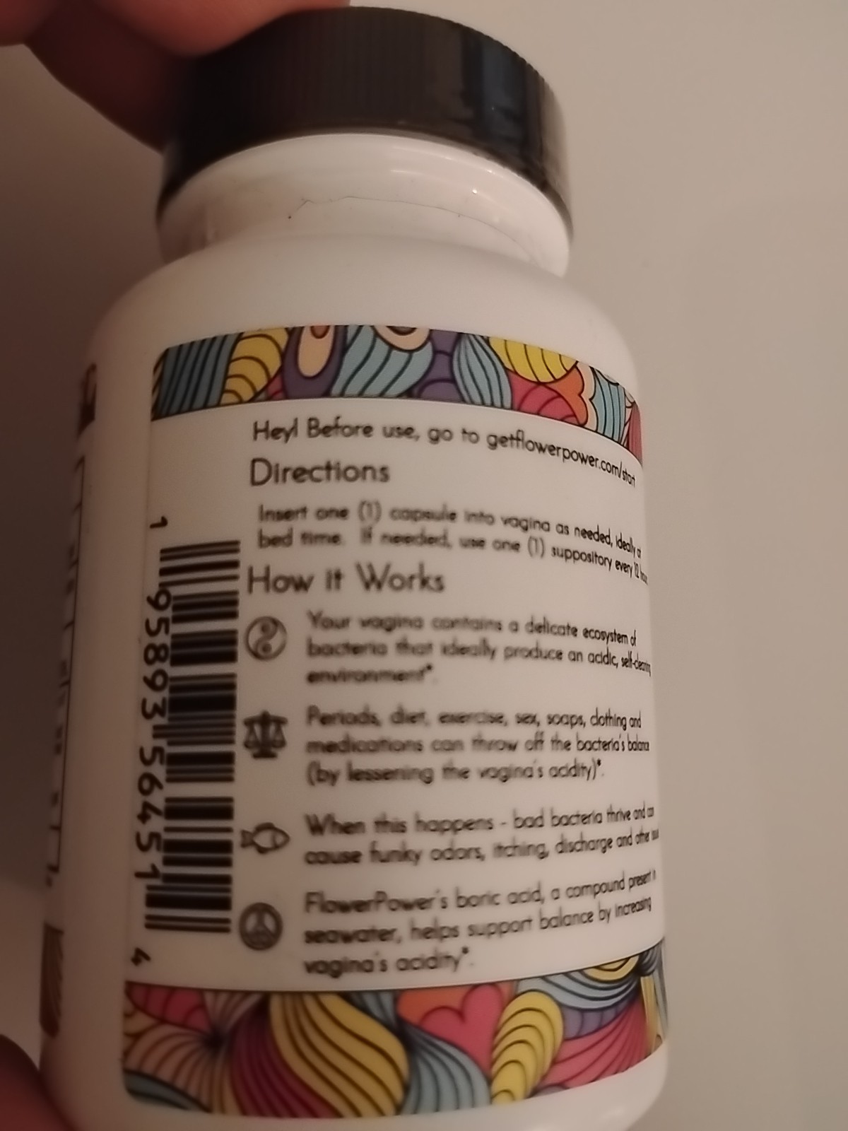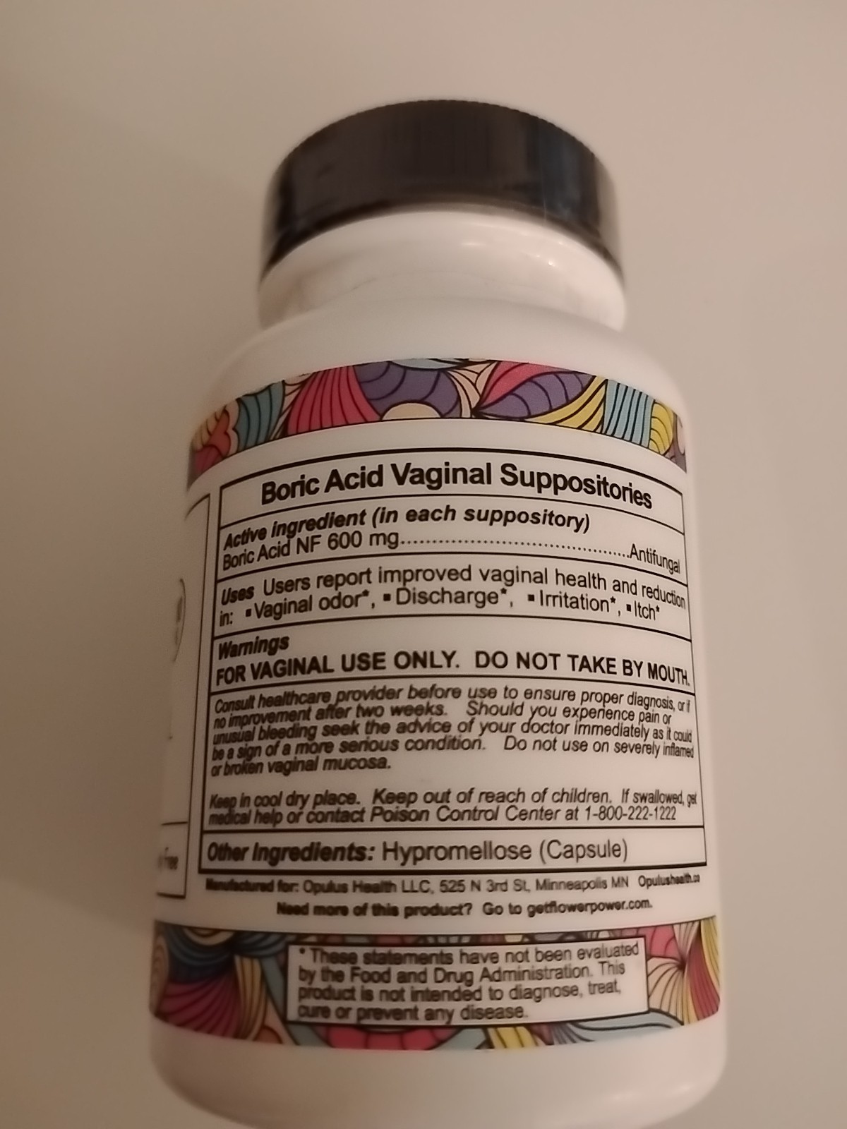 Flower Power Vegan Boric Acid Suppositories - 30 Capsules - 600mg for...
