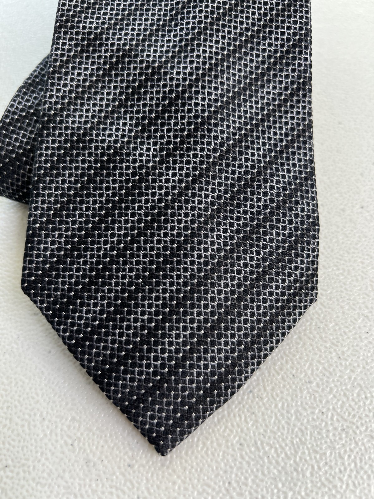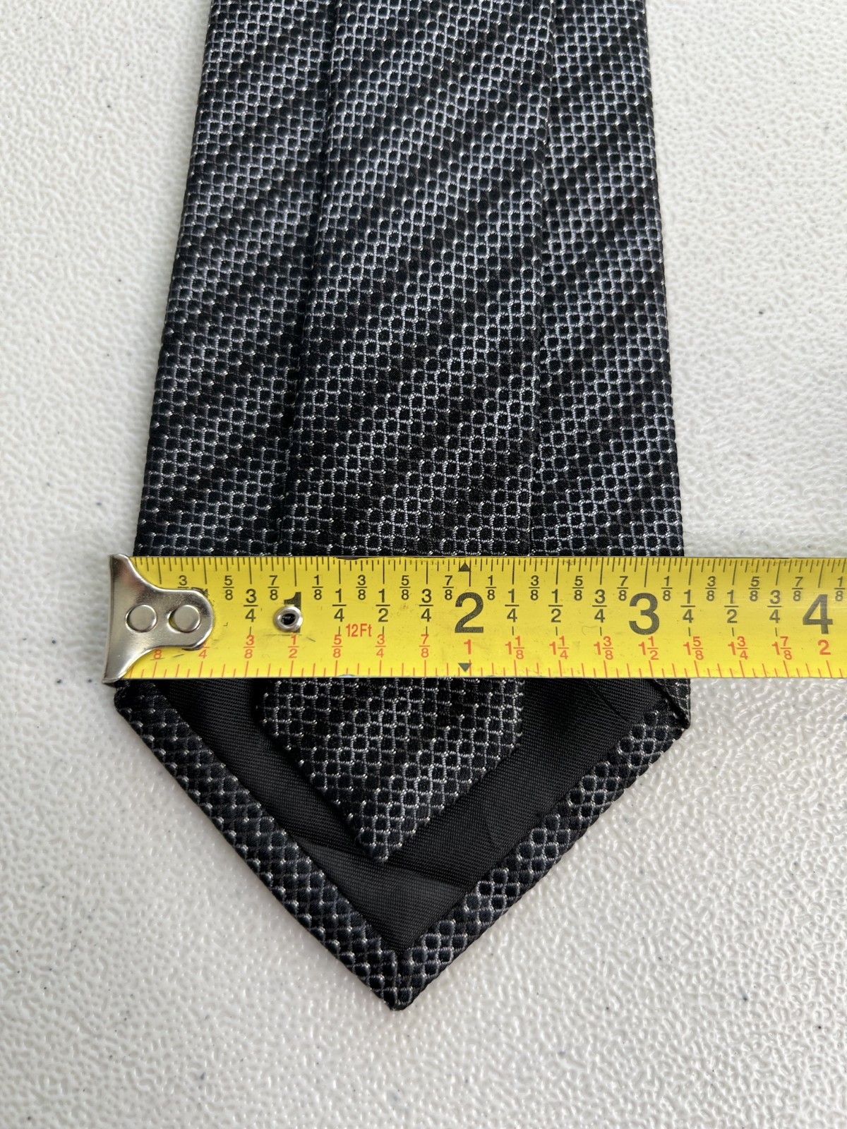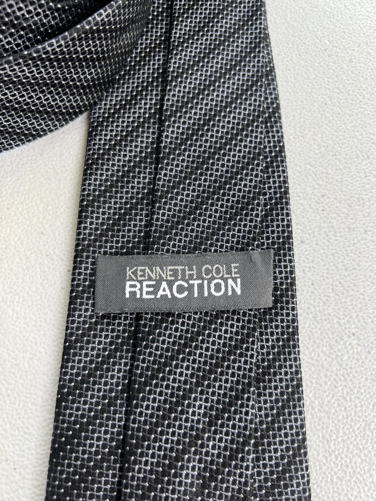 как выглядит Kenneth Cole Reaction Black, Gray Striped/Geometric Pattern 100 Silk Tie NWOT фото