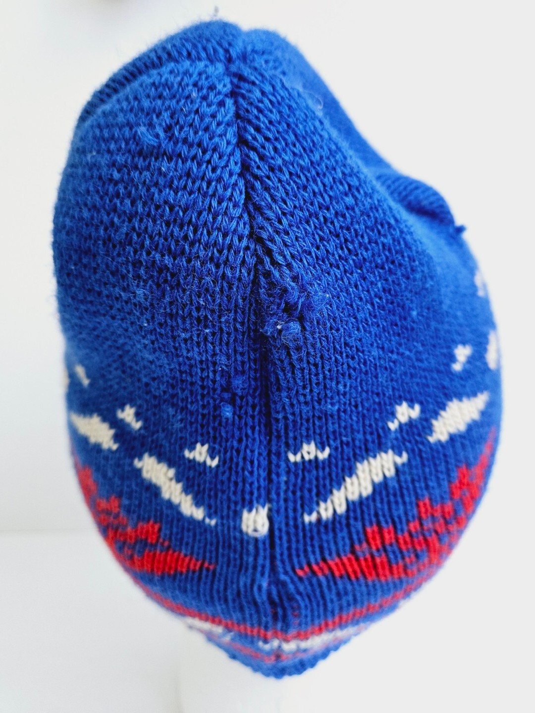 Vtg Wool Beanie Ski Hat Cap Blue Red Nordic Knit USA Made Lands End Ear Flap