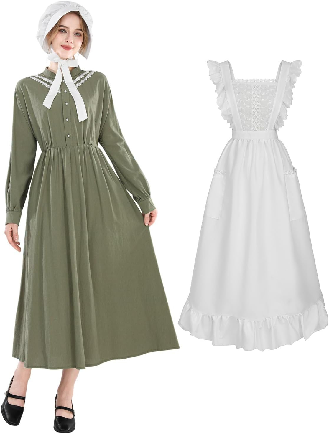 Colonial Prairie Dress for Women Long Sleeve Pioneer Costume Amish Old Fashioned