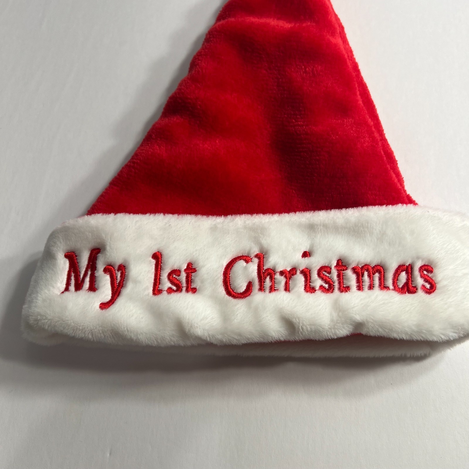 My 1st Christmas Plush Infant Santa Hat Red White Embroidered 6 to 9 Months