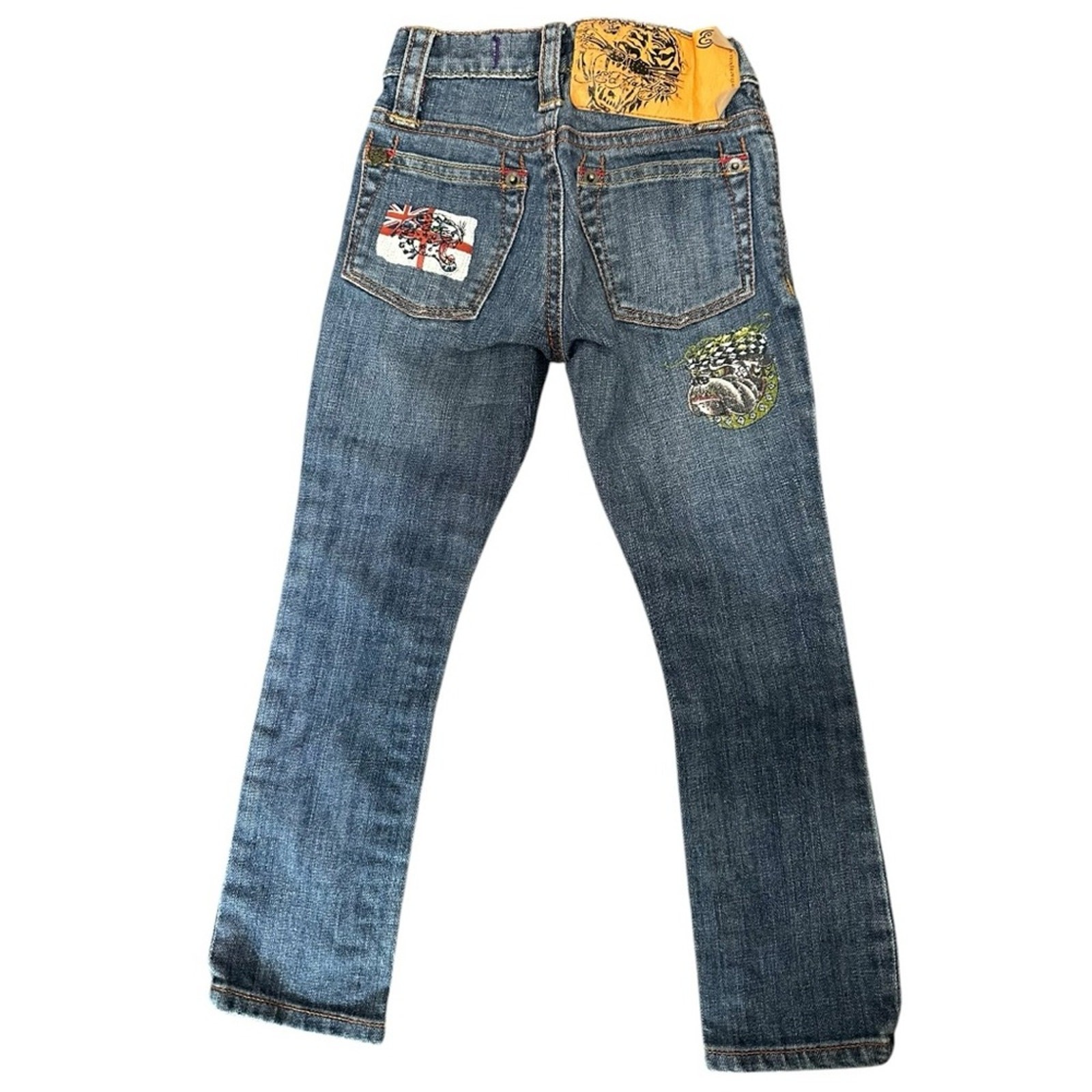 Ed Hardy Uni-Sex Kids 4 Blue Wash Bulldog Union Jack British Flag Bootcut Jeans