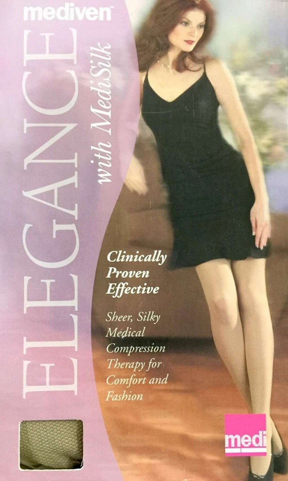 Mediven Elegance Thigh High, Sheer Silky, Petite Length, Silicone Top, 20-30mmHg