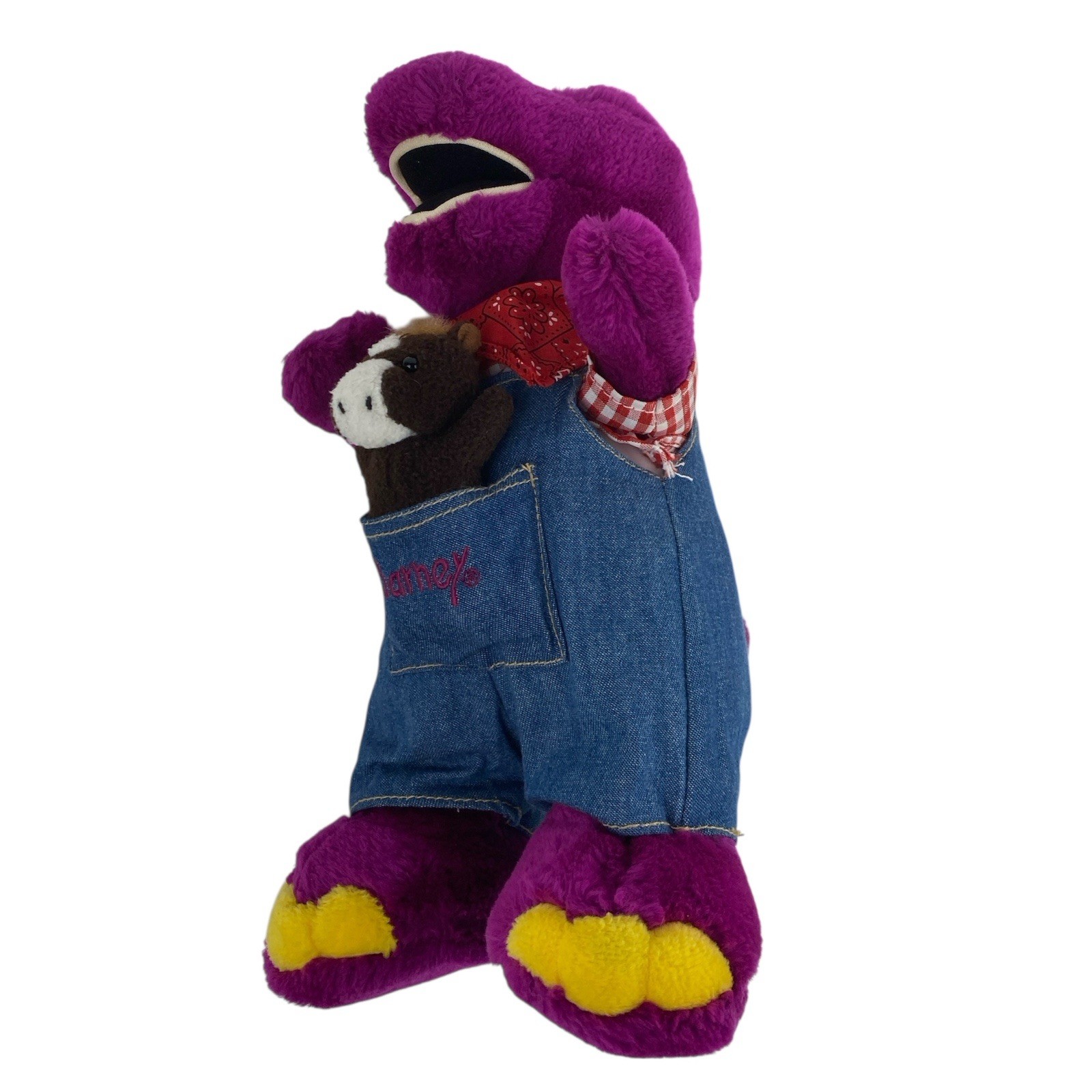 Barney the Purple Dinosaur 13 Plush Farmer Denim Overalls Bandana Lyons