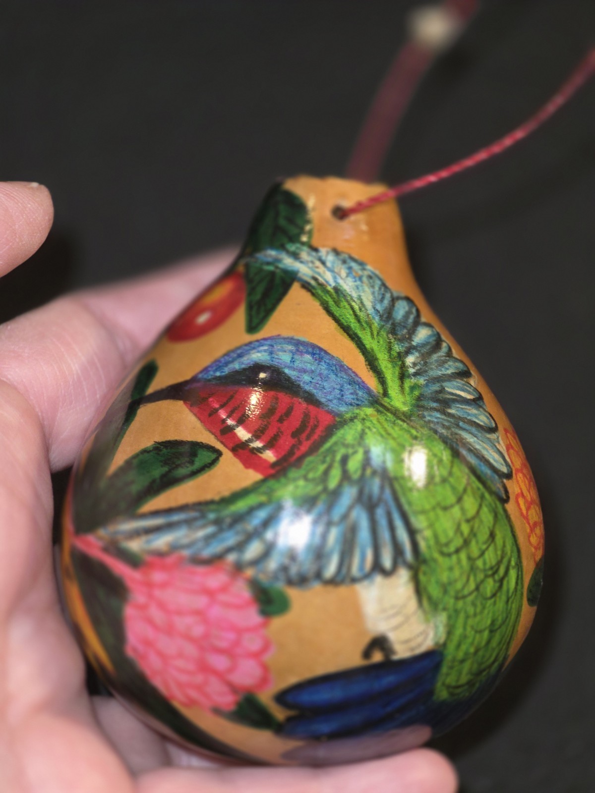 • Vintage Signed Handpainted Gourd ORNAMENT Or Art Piece