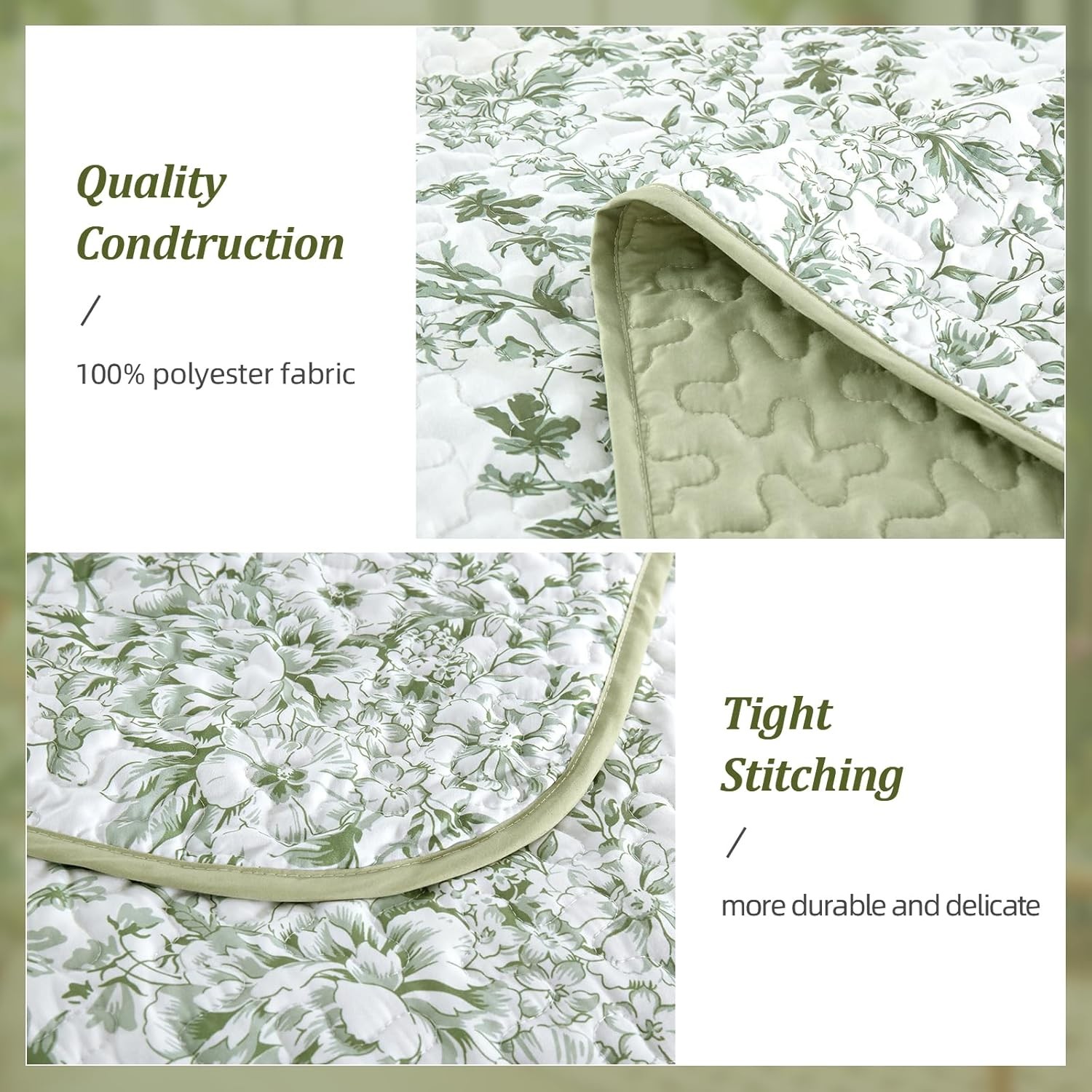 3-Piece Botanical Bedspread Microfiber Lightweight Coverlet Quilt Set All-Season