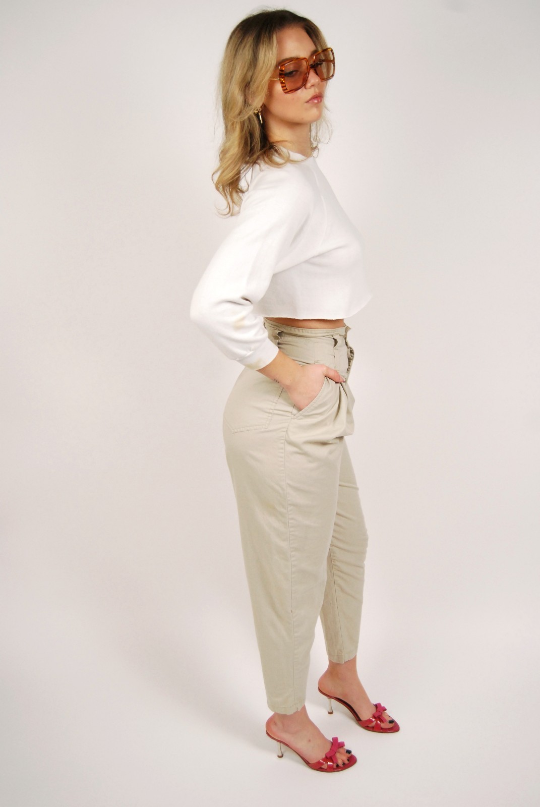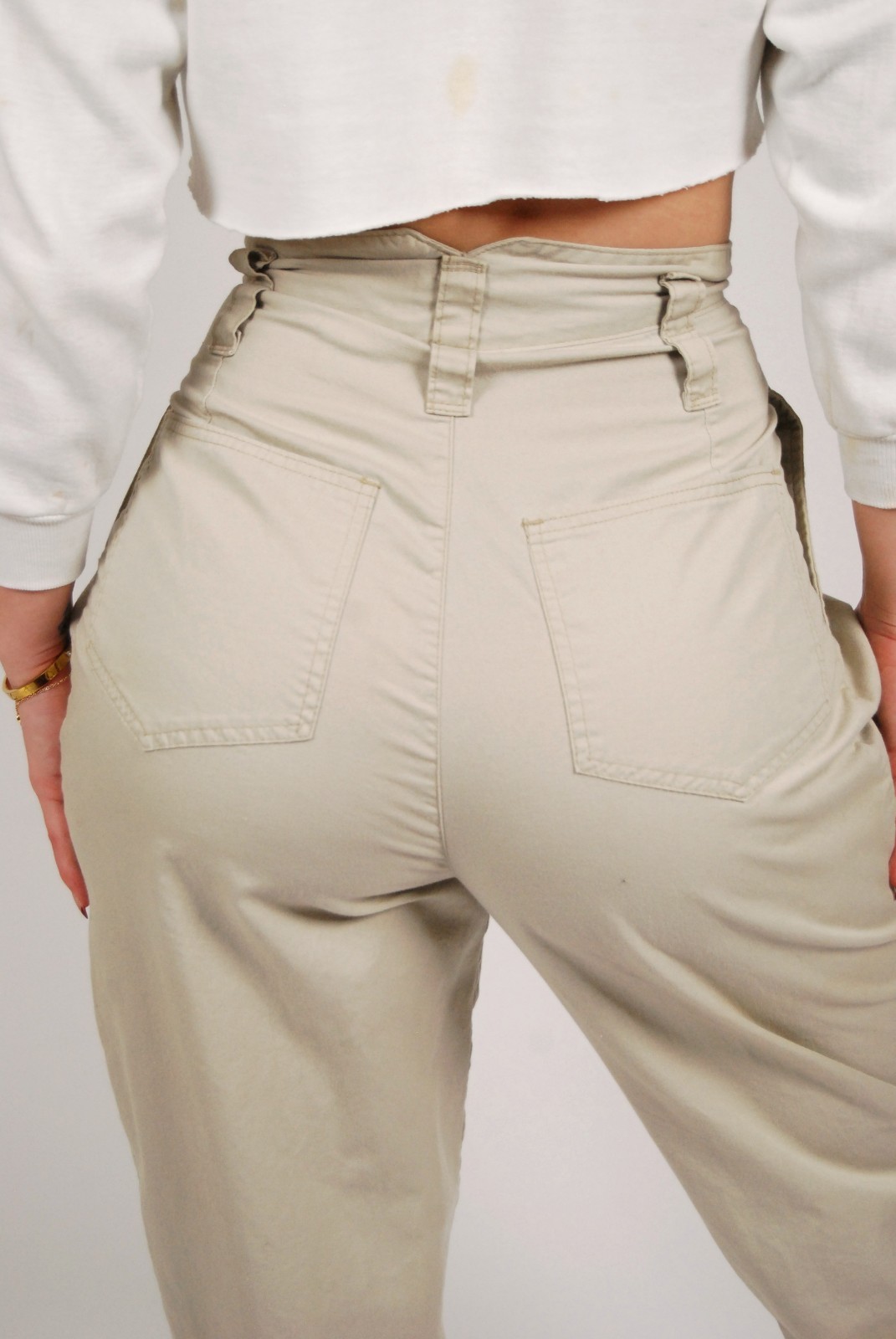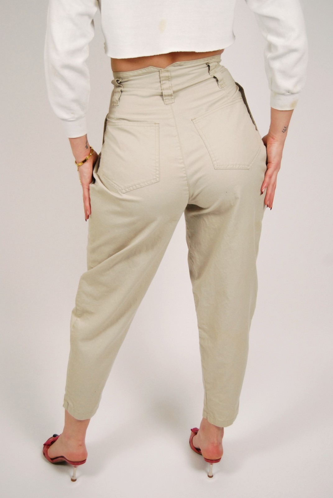 80s Ultra High-Rise Trousers 26 small khaki vintage beige pleated preppy chic