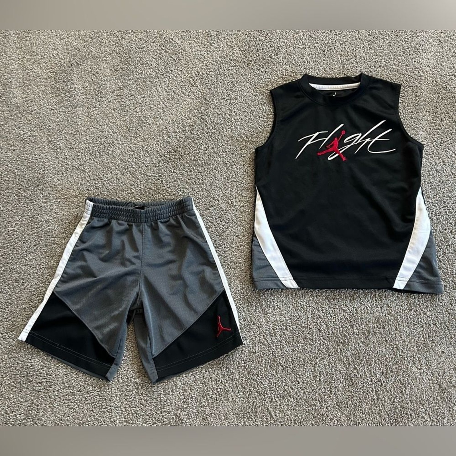 Jordan Flight 2-Piece Matching Shirt/Shorts Set in Black, Grey, White size 6