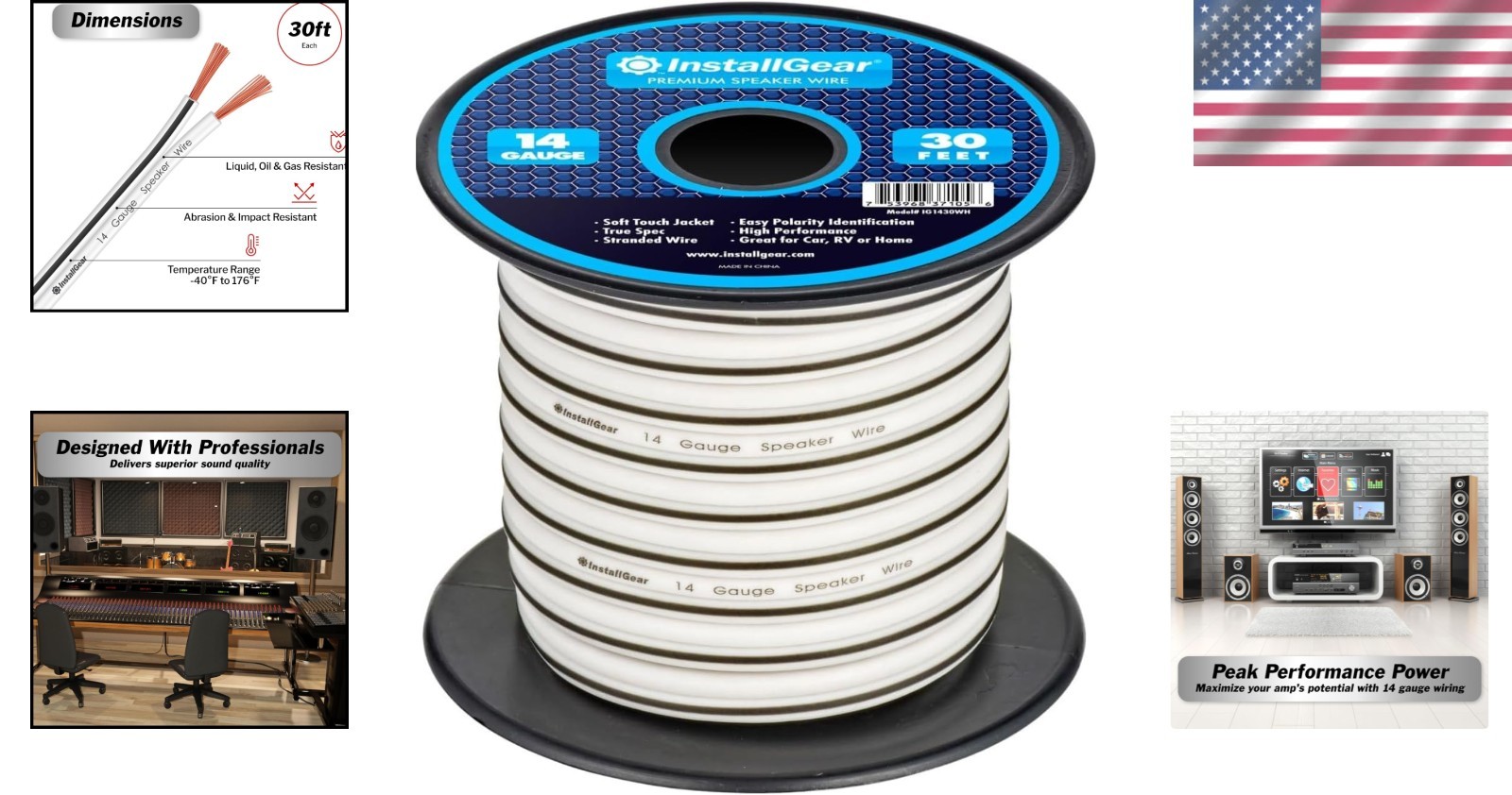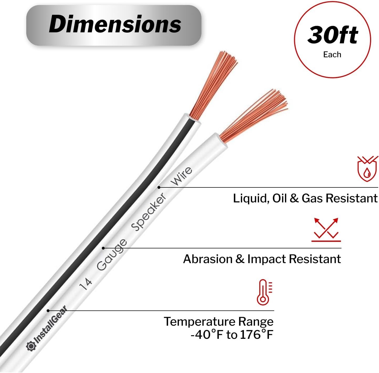 14 Gauge 30ft Speaker Wire Durable Black Audio Cable for Perfect Sound