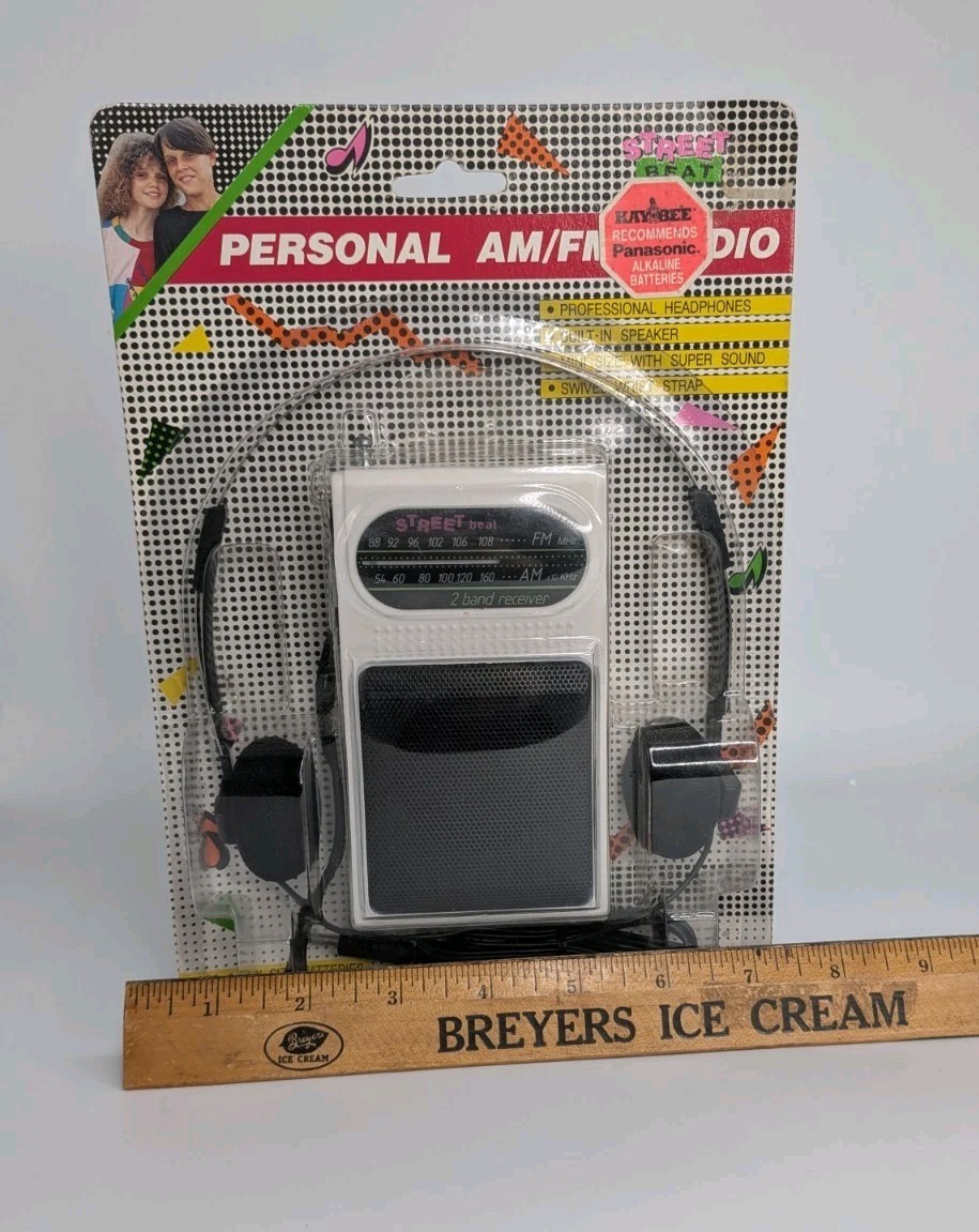 как выглядит NOS 1990 Street Beat Model PR22 AM FM Pocket Radio With Headphones фото