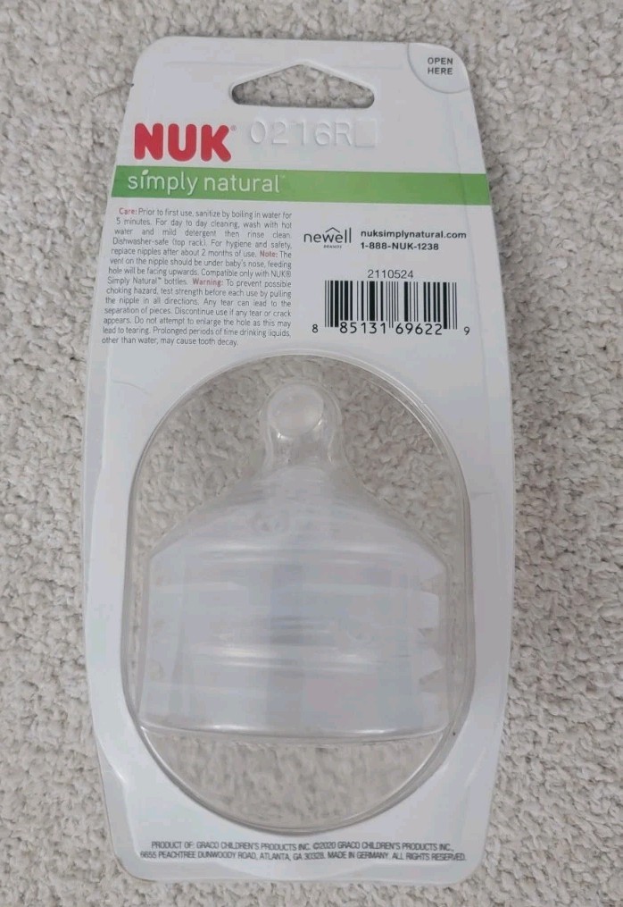 New Nuk Simply Natural 2pk Nipple. 0 M Slow Flow, BPA Free-Anti Colic-Multi Hole