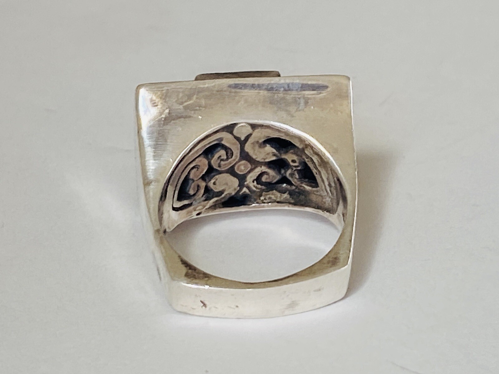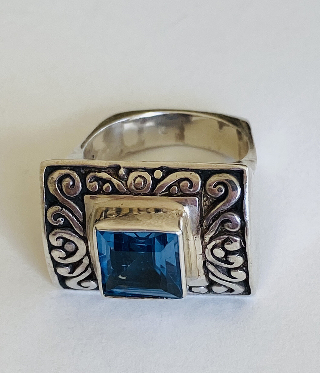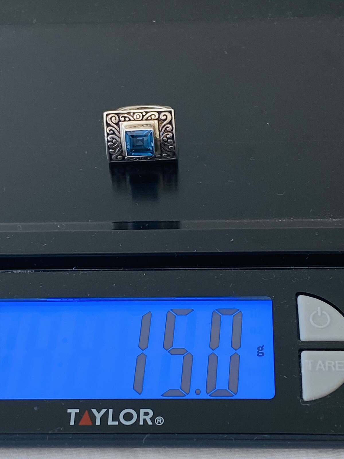 как выглядит Vintage 925 Sterling Silver BLUE TOPAZ Ornate Scroll Ring Size 6 HEAVY 15-Grams фото