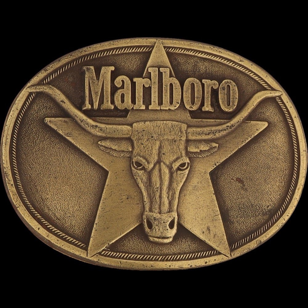 как выглядит New Brass Marlboro Cattle Bull Longhorn Cigarette Western Cowboy Vtg Belt Buckle фото