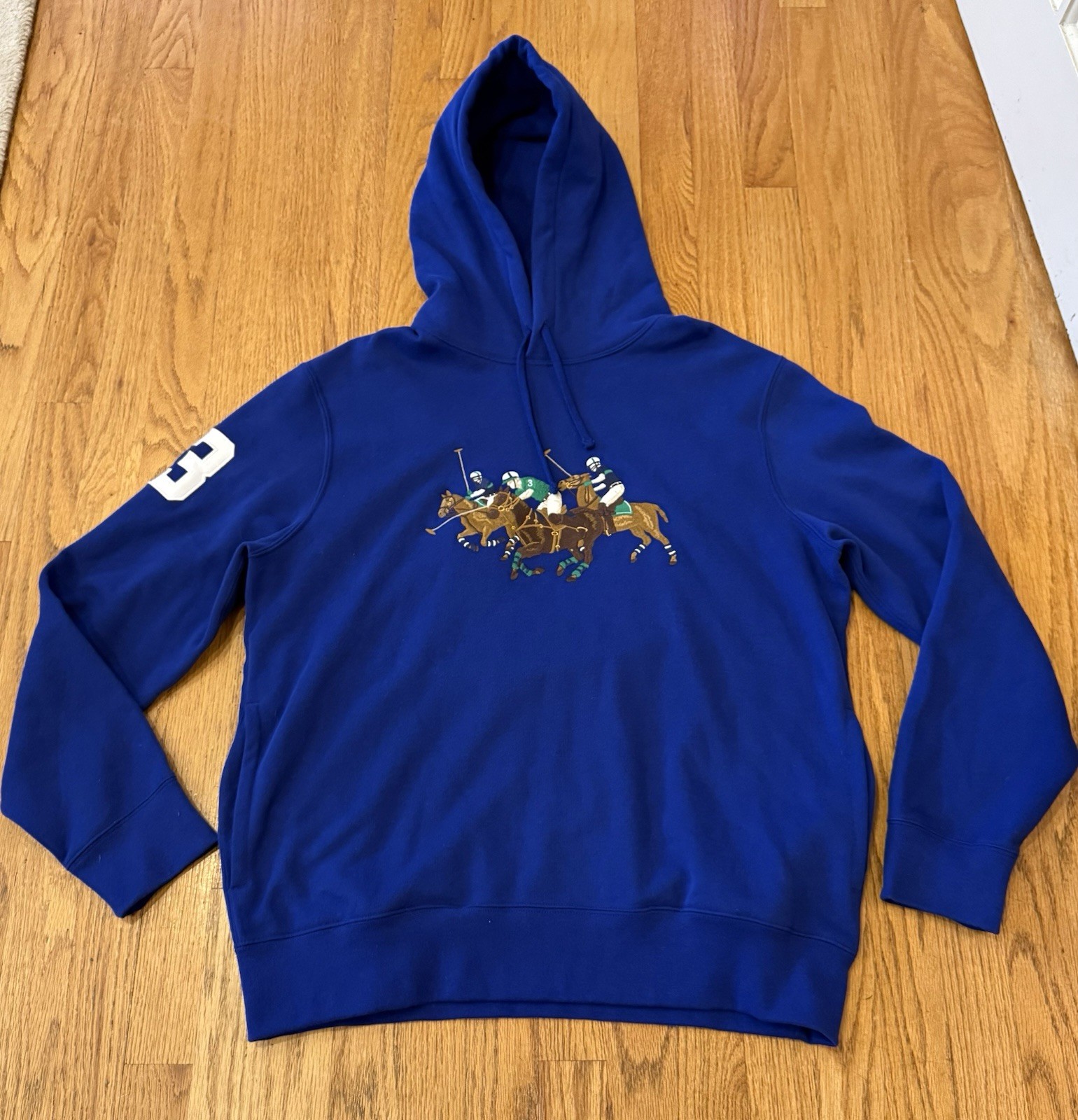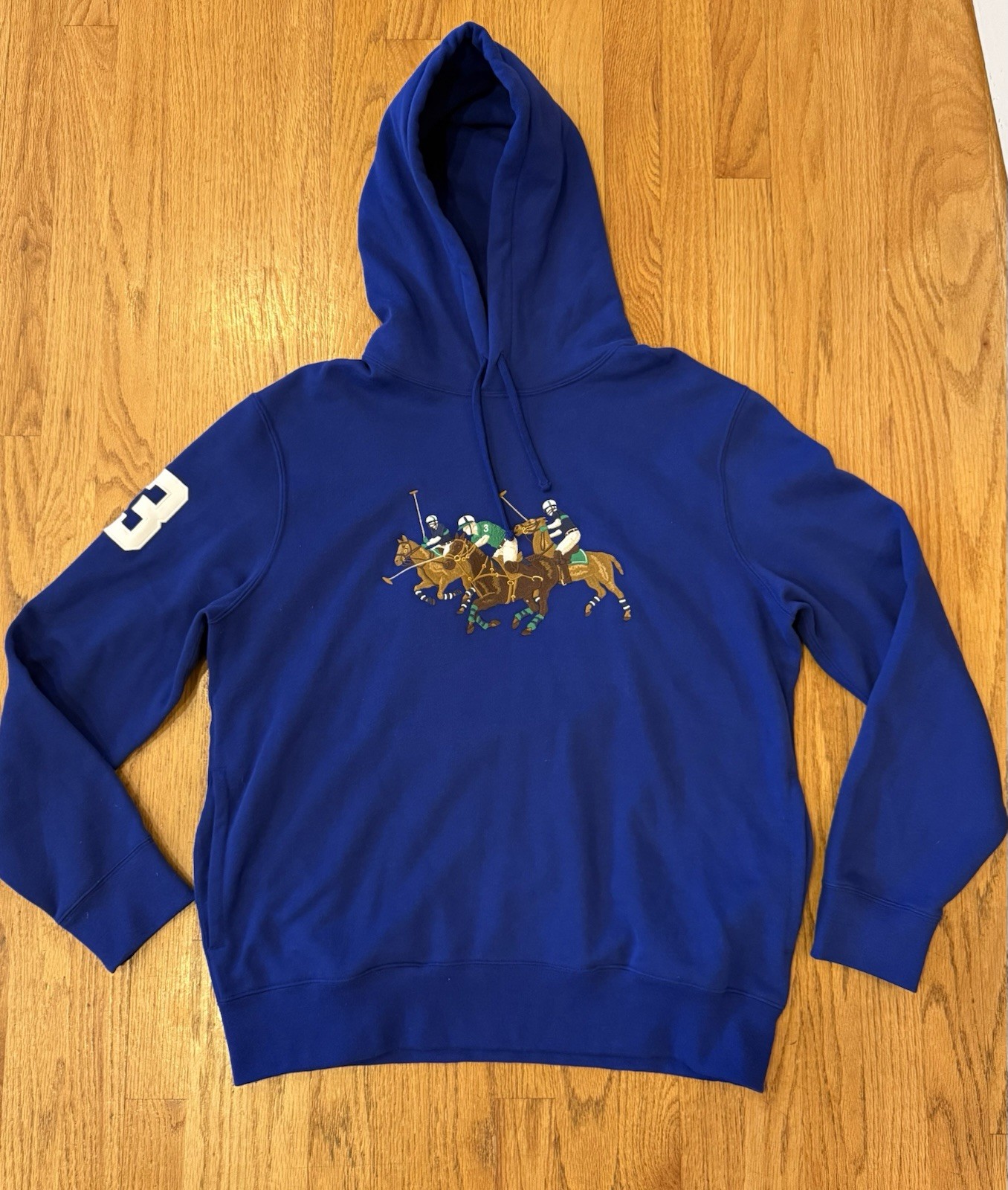 Ralph Lauren Triple Pony Fleece cotton hoodie blue 3 patch on sleeve large