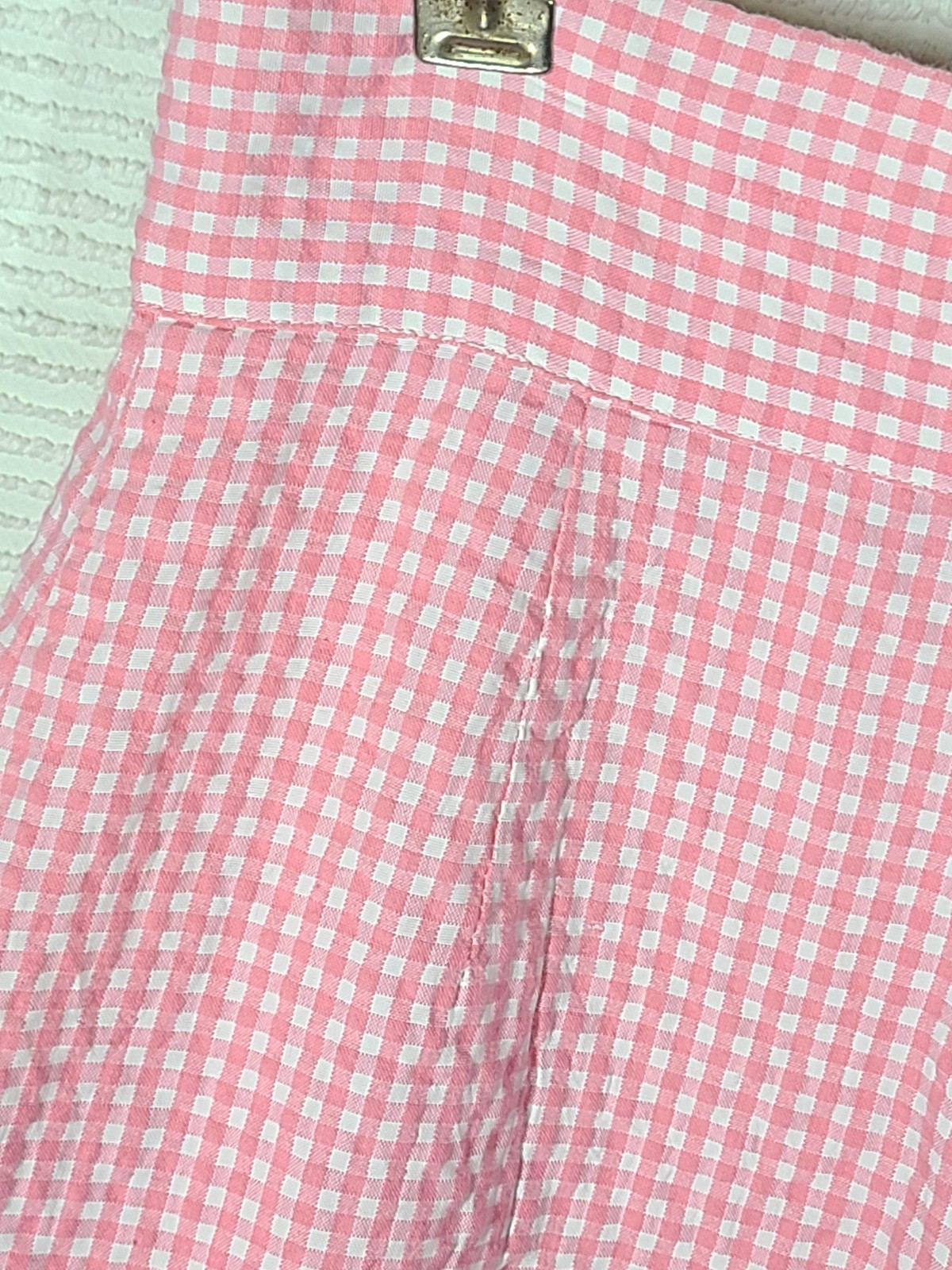 Vtg 70s Gingham Pants Pink Wide Leg High Waist Checker Seersucker 28w S M Retro
