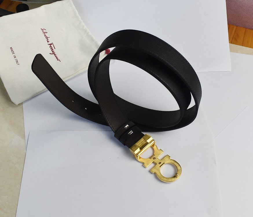 Ferragamo Men's Reversible/Adjustable Gancini Belt Golden finish buckle 120cm